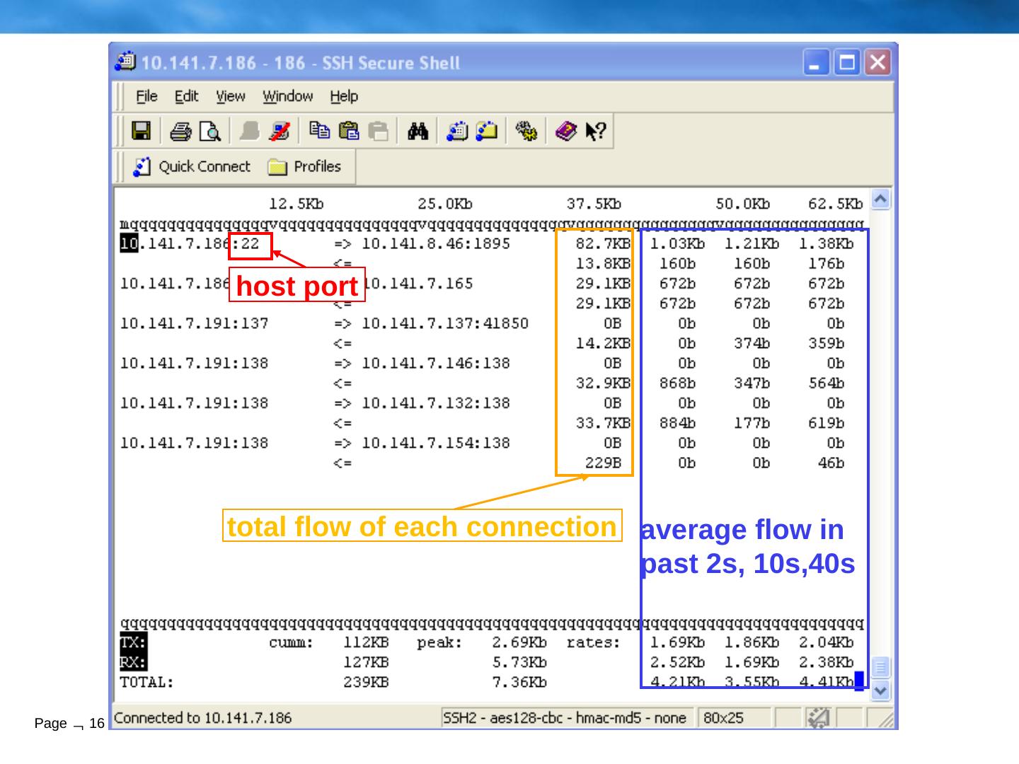 16 . host port total flow of each connection average flow in past 2s, 10s,40s Page 16