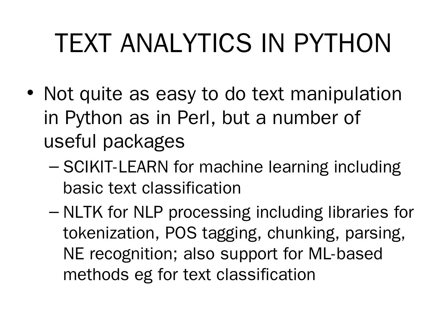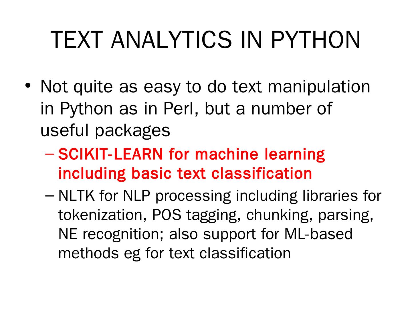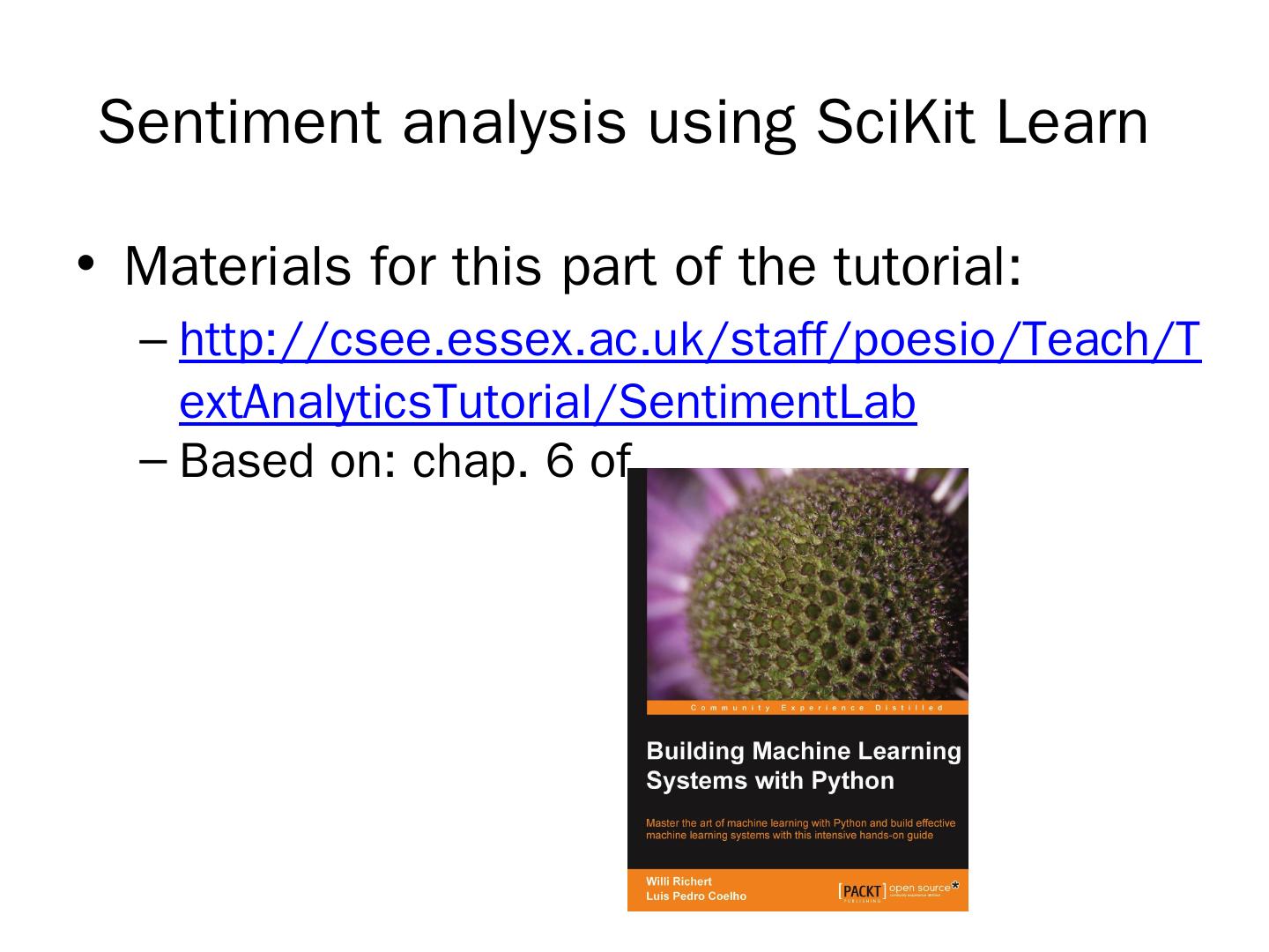 LABS. Basic text analytics: text classification using bags-of-words. Sentiment analysis of tweets using Python's SciKit Learn library. More advanced text analytics: ...