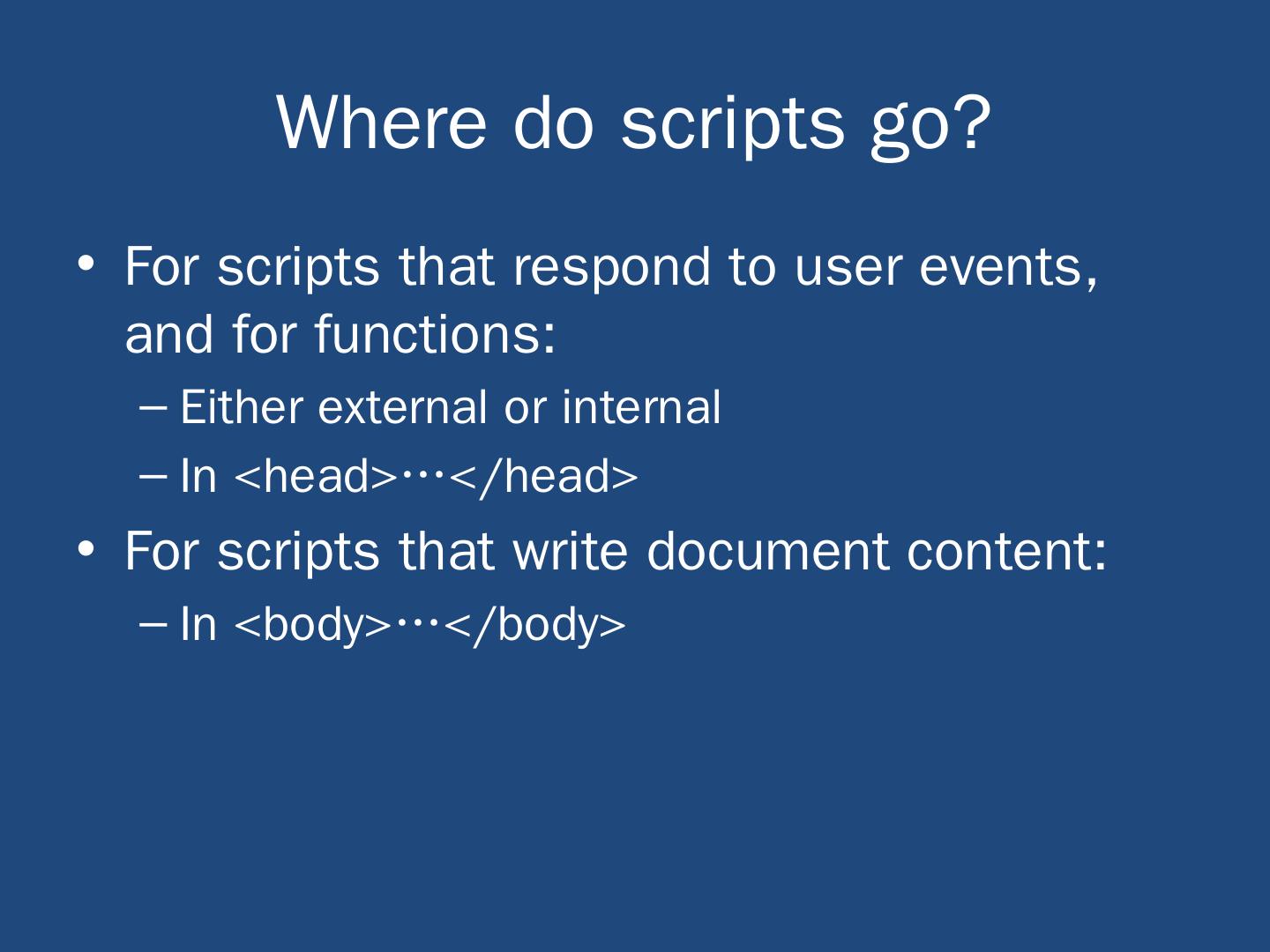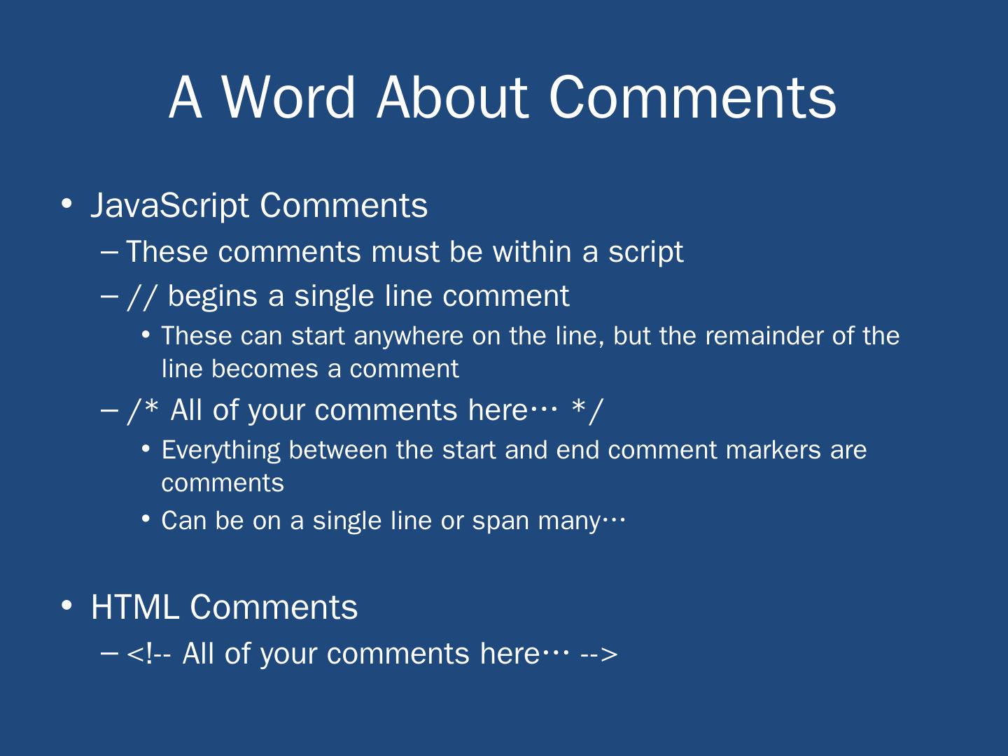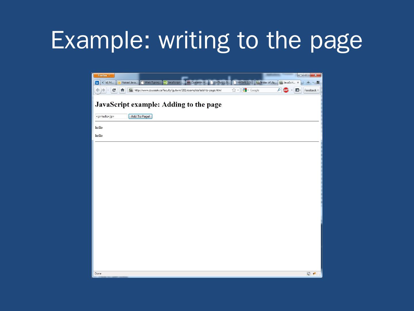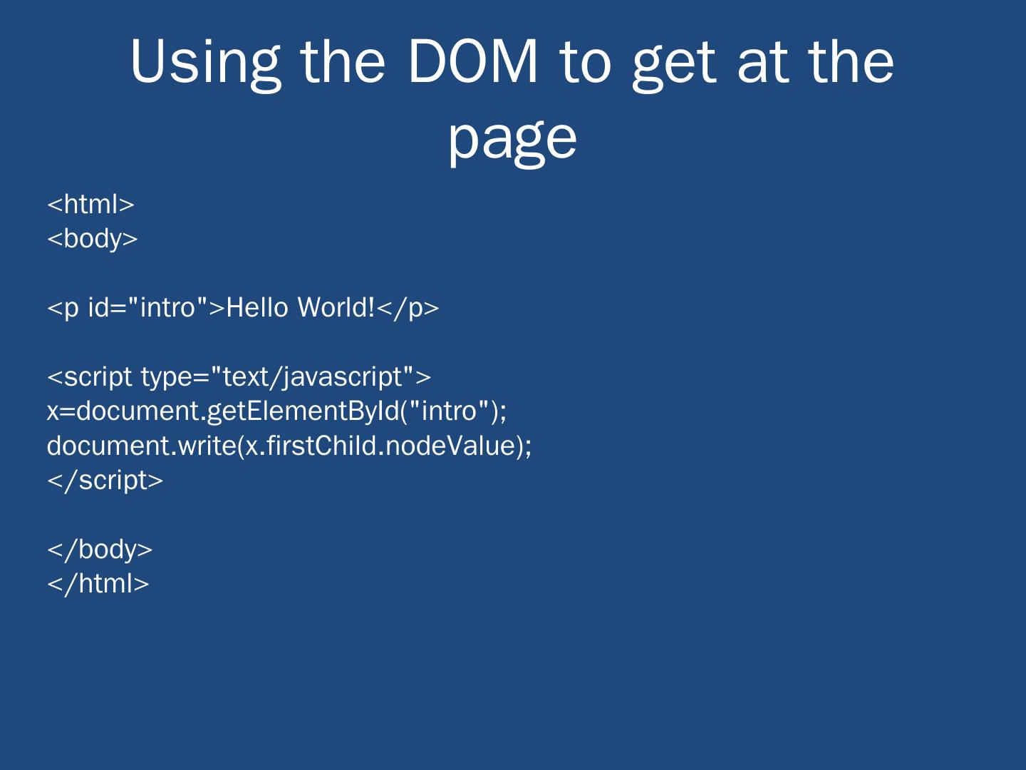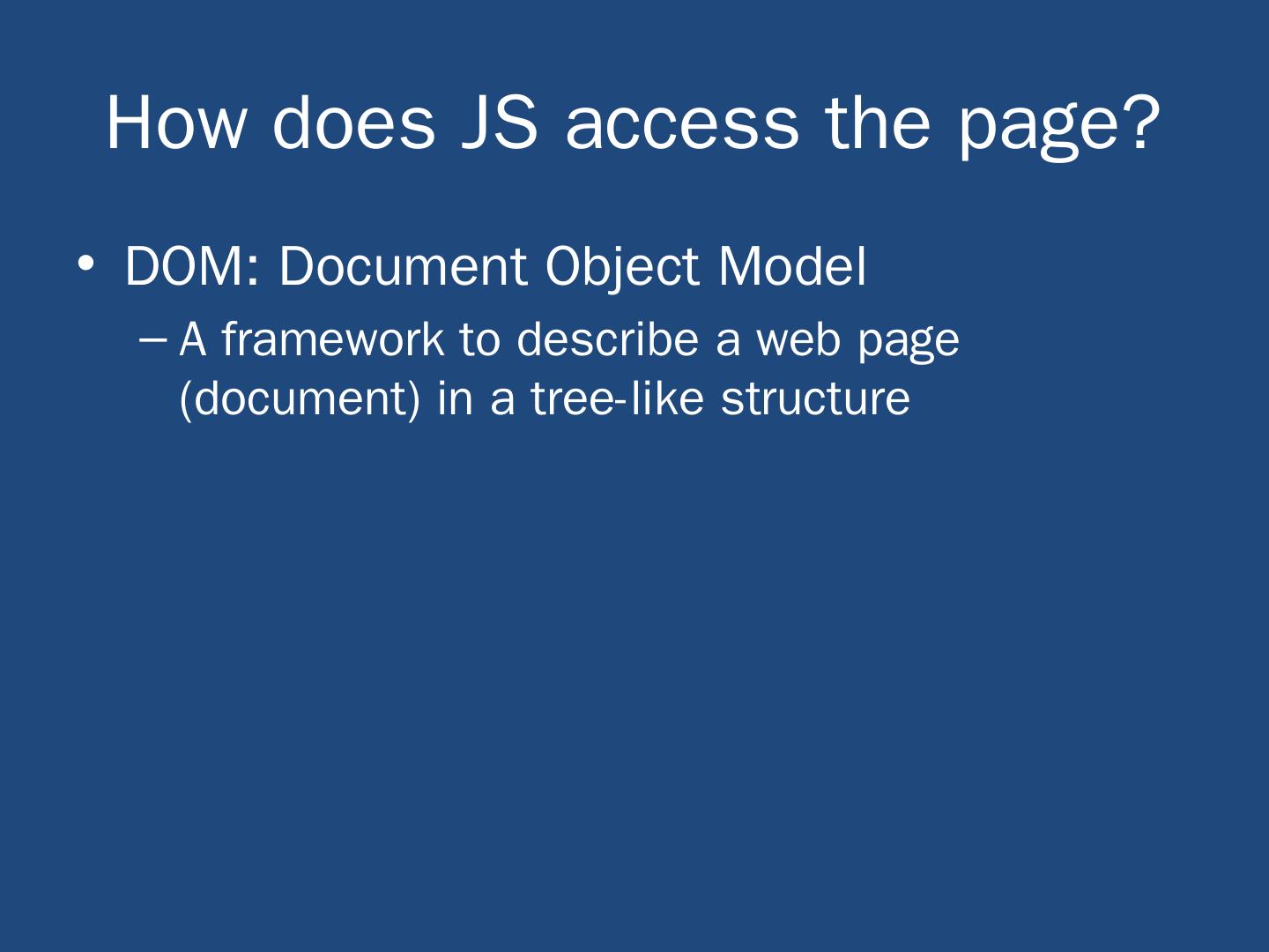 Actually ECMAScript (ECMA-262). en.wikipedia.org/wiki/ECMAScript; Several variants (JScript, Action Script…) What can JavaScript do? It is a full programming ...