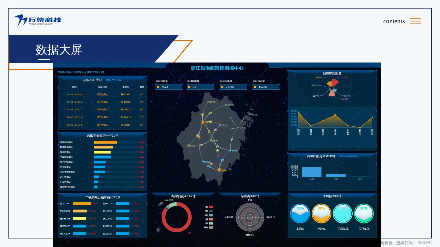 全省超限数据统一存储支撑站点1000+ 日均车辆700W+ 交警/路政/运管 ...