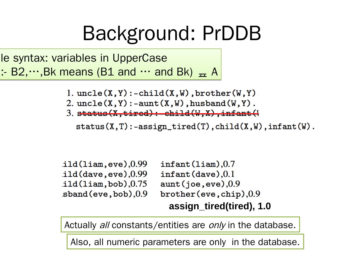Inference is differentiable and scalable; Data and inference rules are compiled into a neural backend (e.g., Tensorflow, Theano); You can learn weights for DB ...