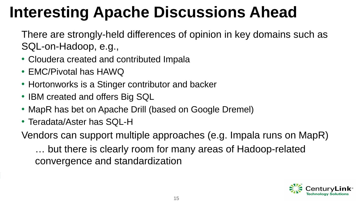 Source: “Apache Hadoop YARN: Moving beyond MapReduce and Batch Processing with ... Cloudera created and contributed Impala; EMC/Pivotal has HAWQ ...