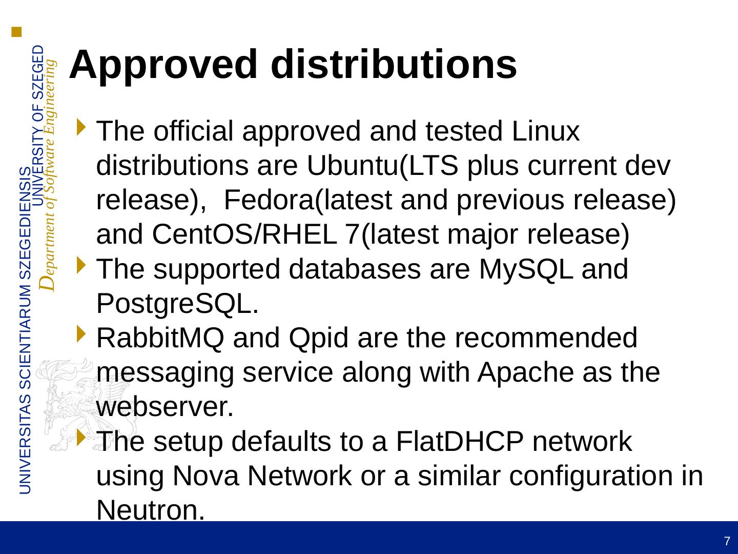 RabbitMQ and Qpid are the recommended messaging service along with Apache as the webserver. The setup defaults to a FlatDHCP network using Nova ...