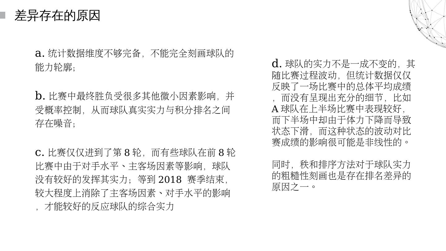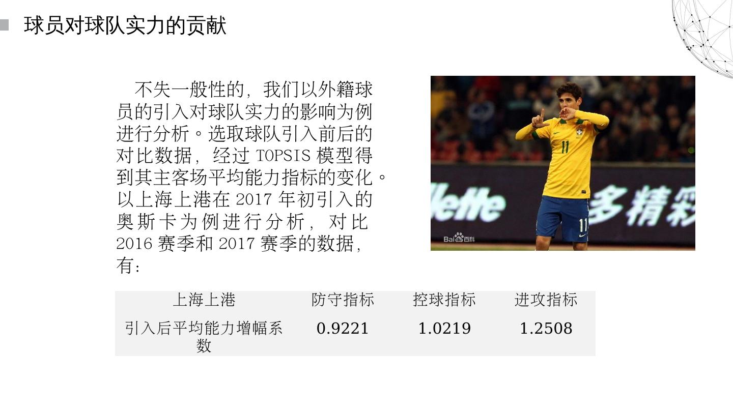 以K-means聚类算法进行球队的风格聚类,观测引入外援前后其所属类的差异或者其 ... 结合TOPSIS算法,通过主客场秩和来对球队能力进行了实力排名;基于所做的 ...