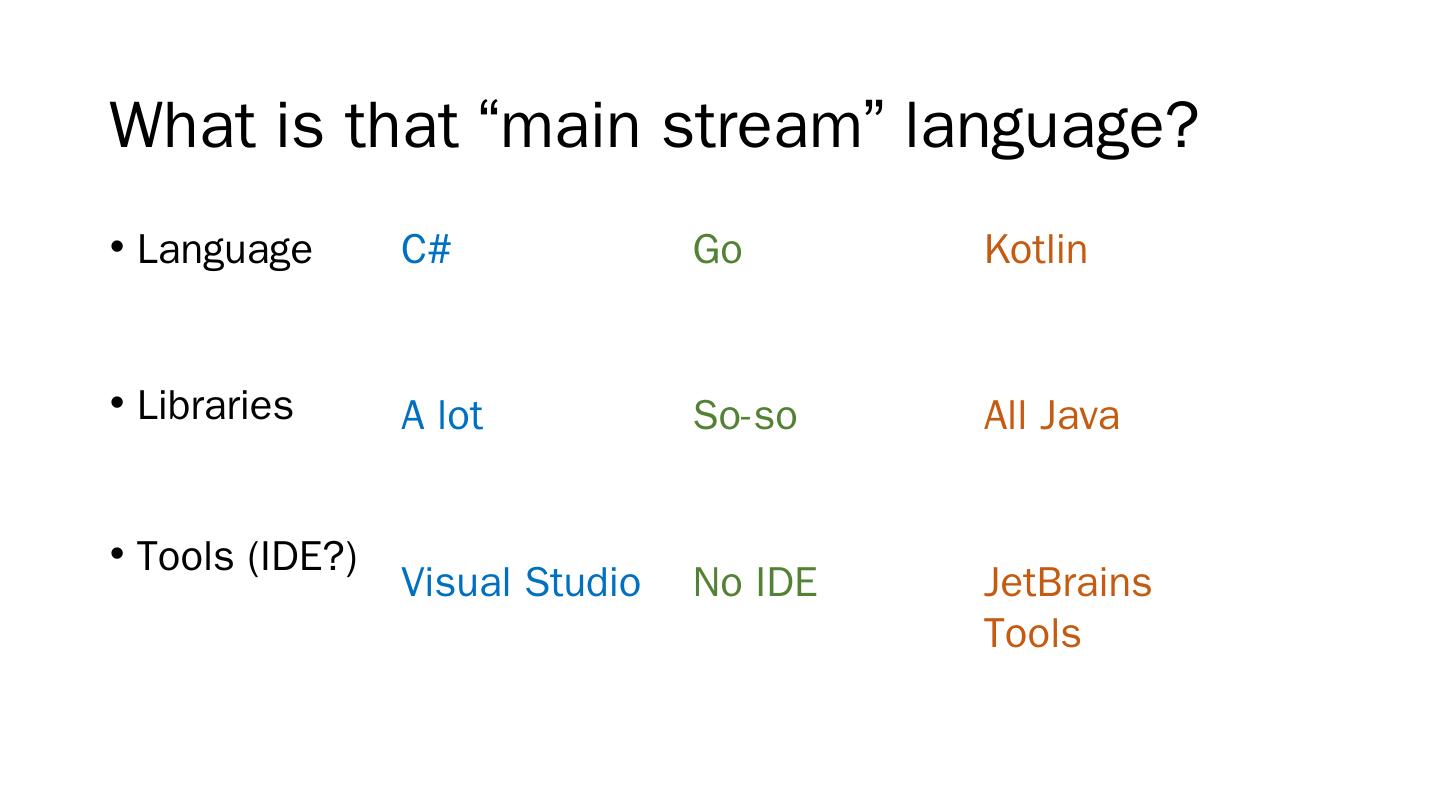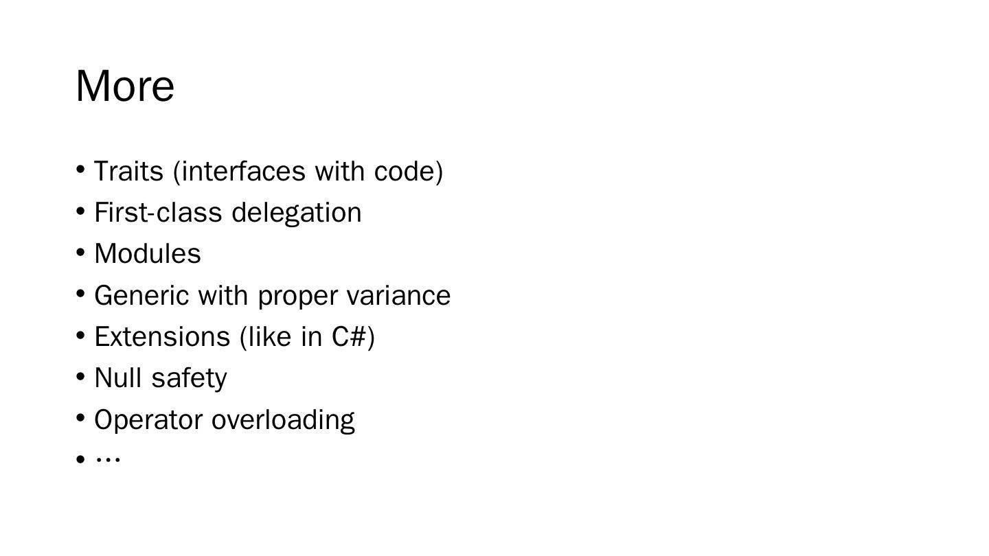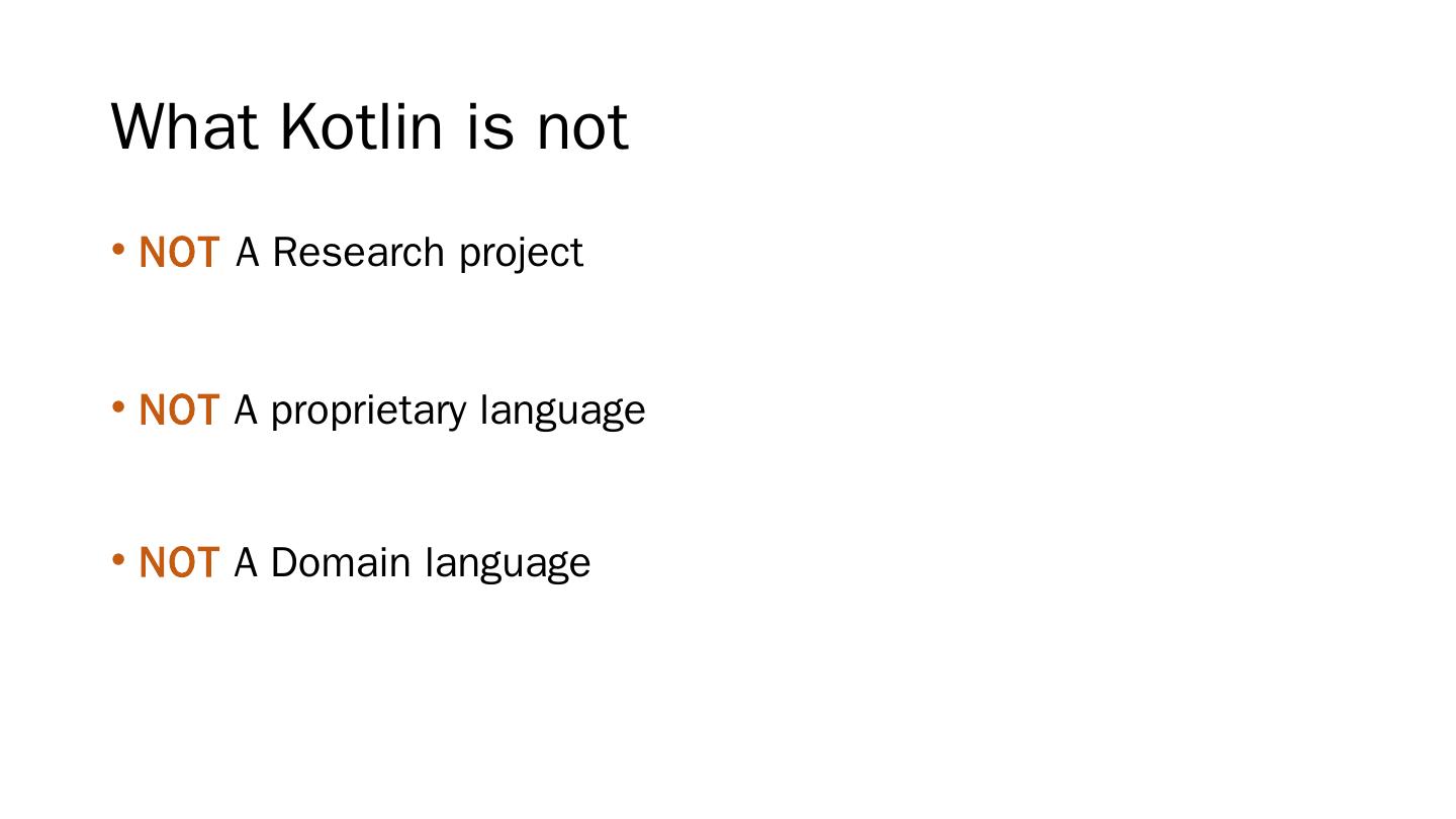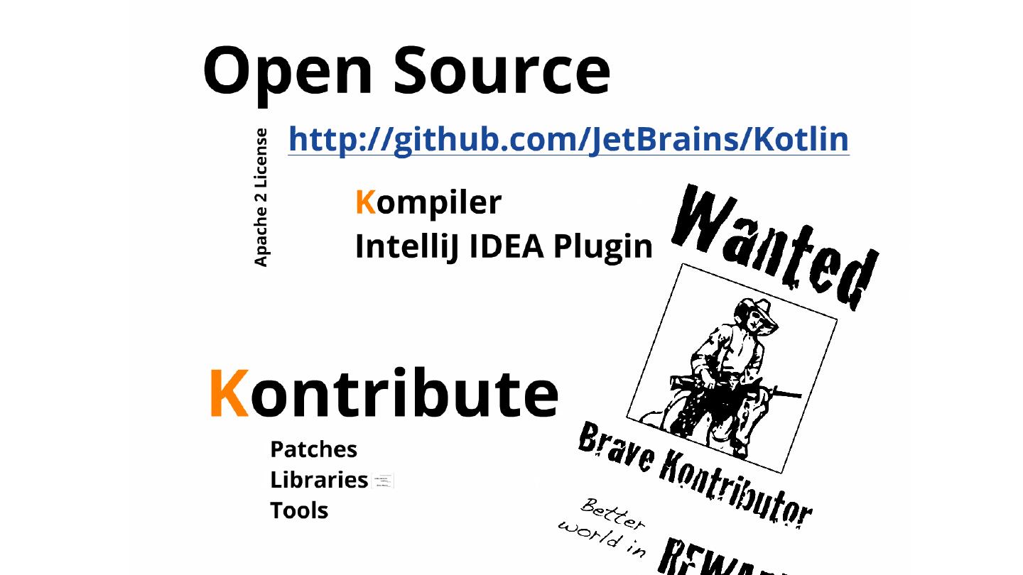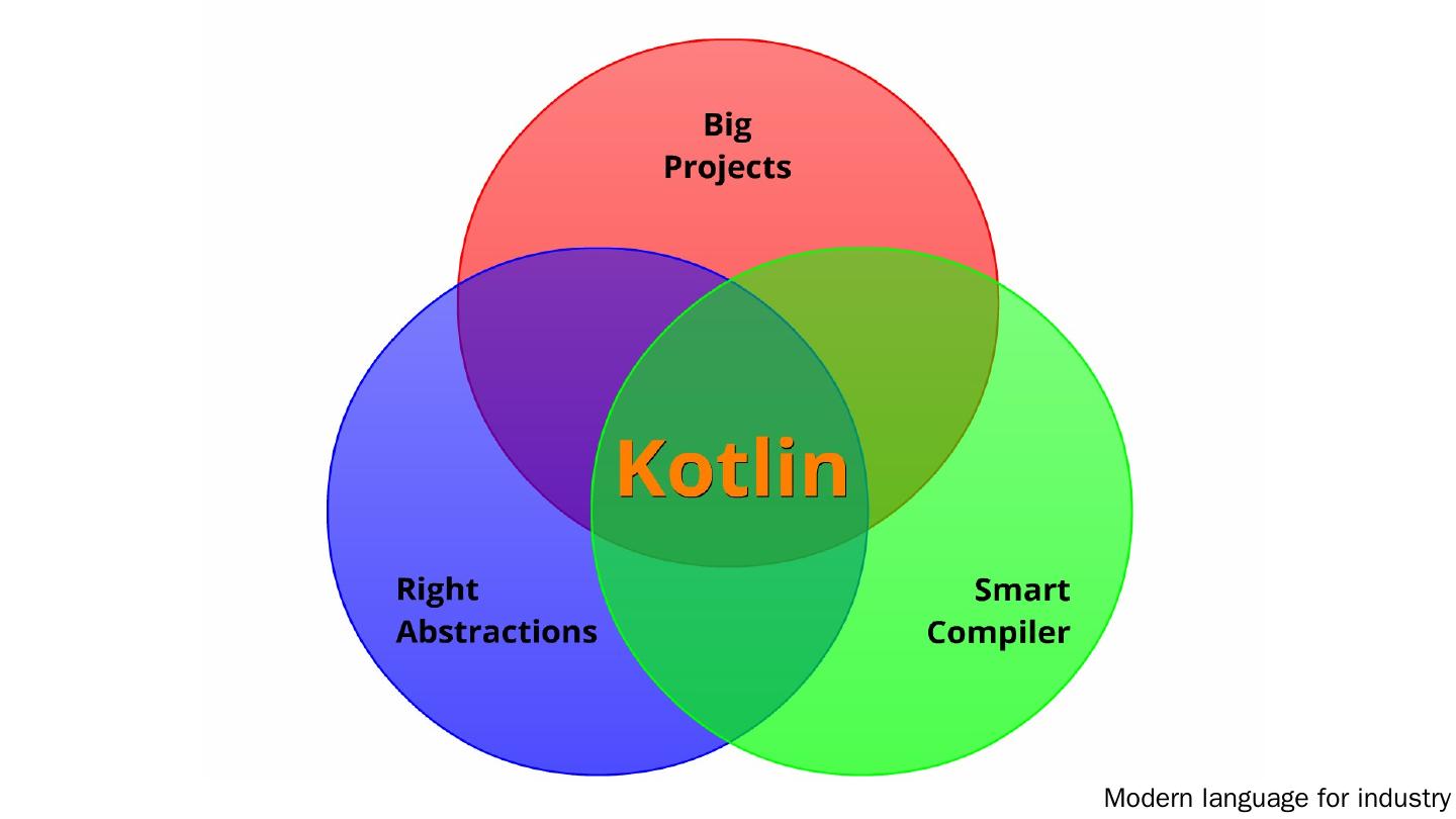 Kotlin. All Java. JetBrains Tools. Modern language for industry. More. Traits (interfaces with code); First-class delegation; Modules; Generic with proper variance ...