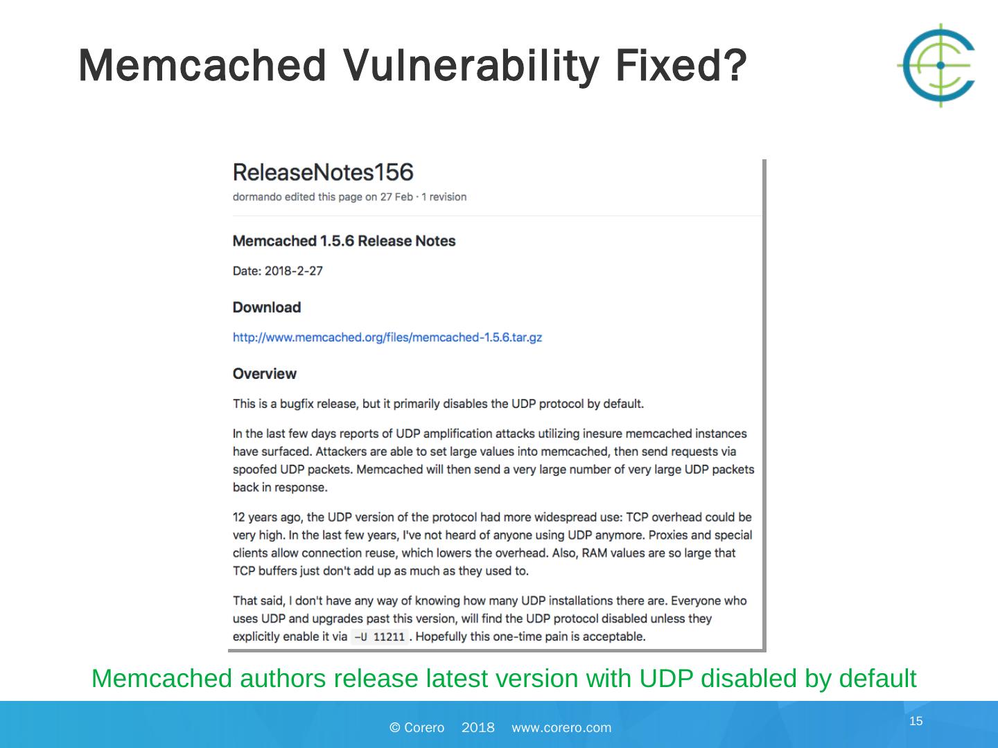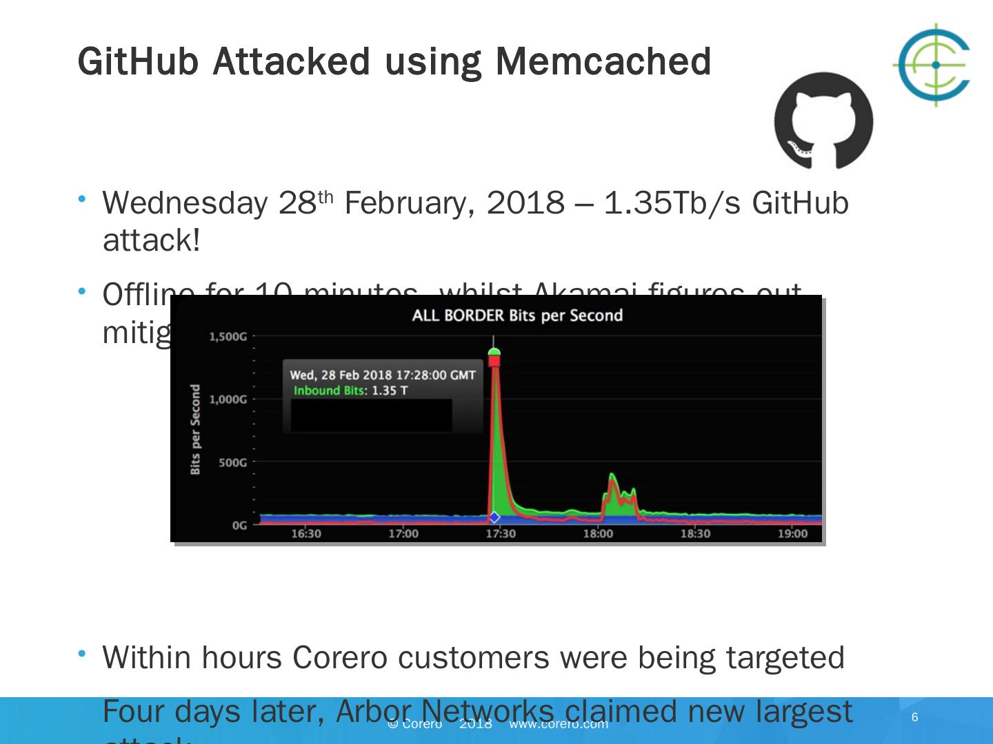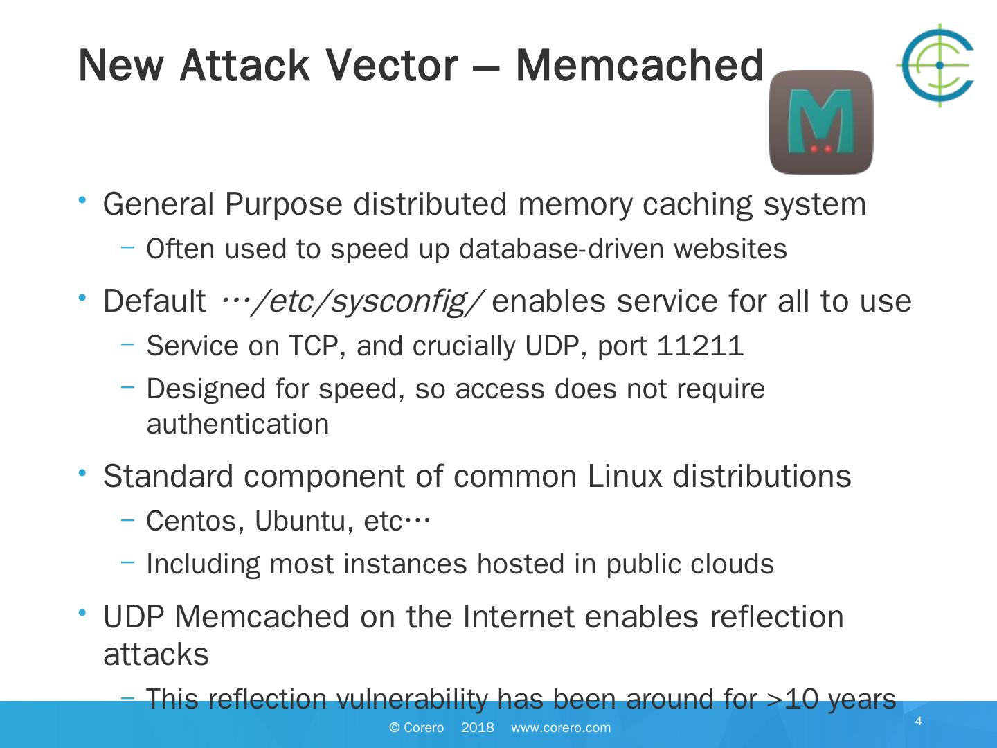UDP Memcached on the Internet enables reflection attacks. This reflection vulnerability has been around for >10 years. New Attack Vector – Memcached. 5.