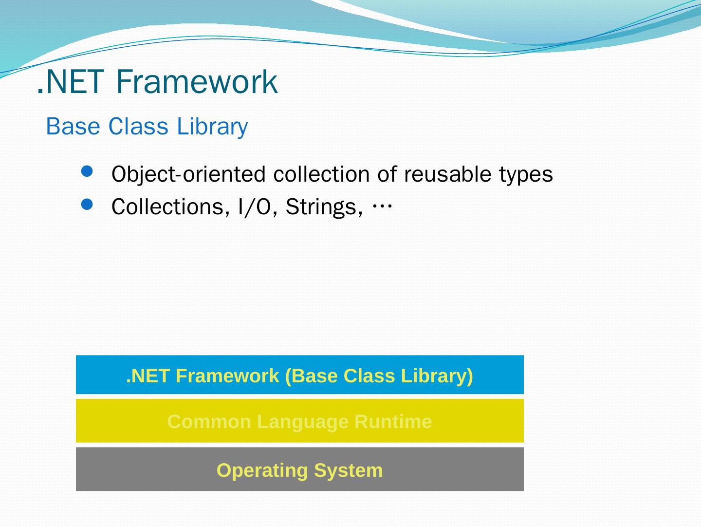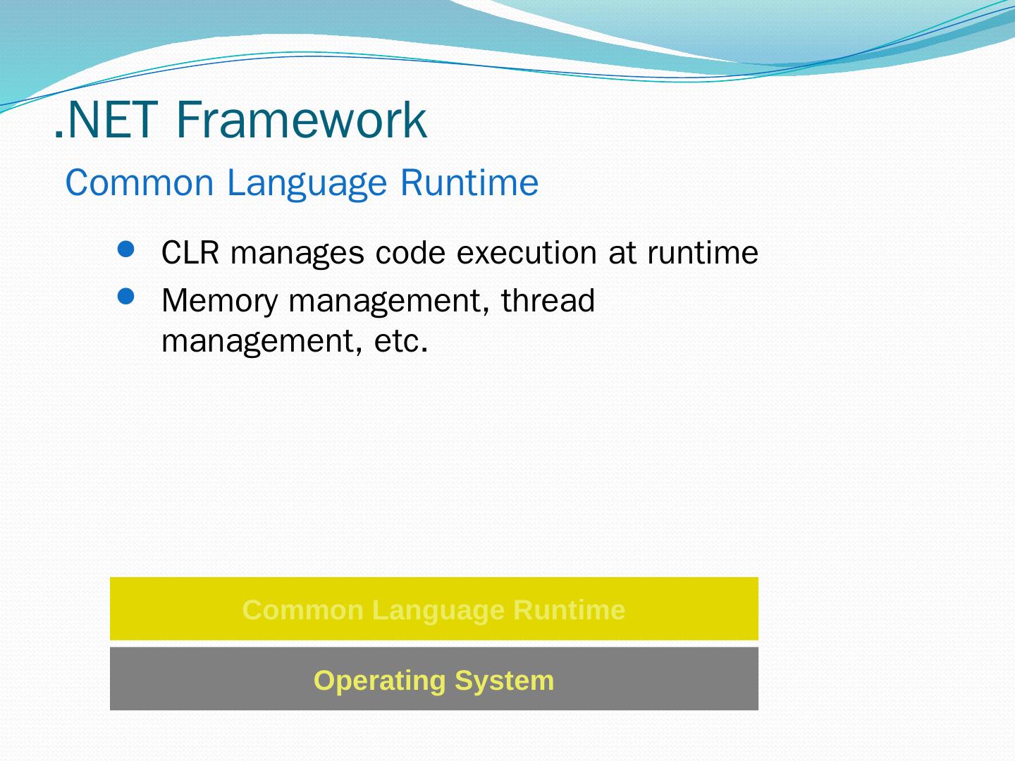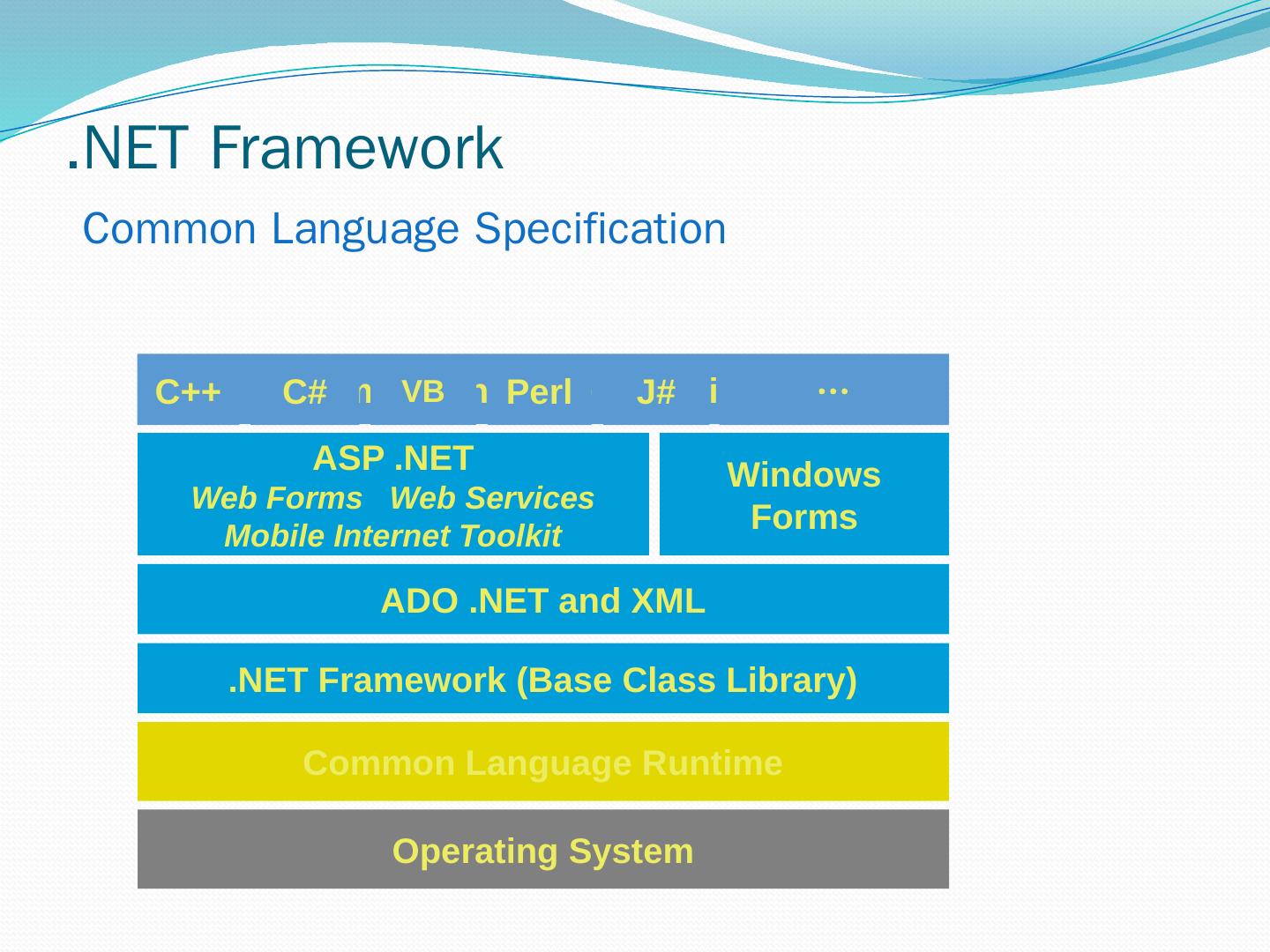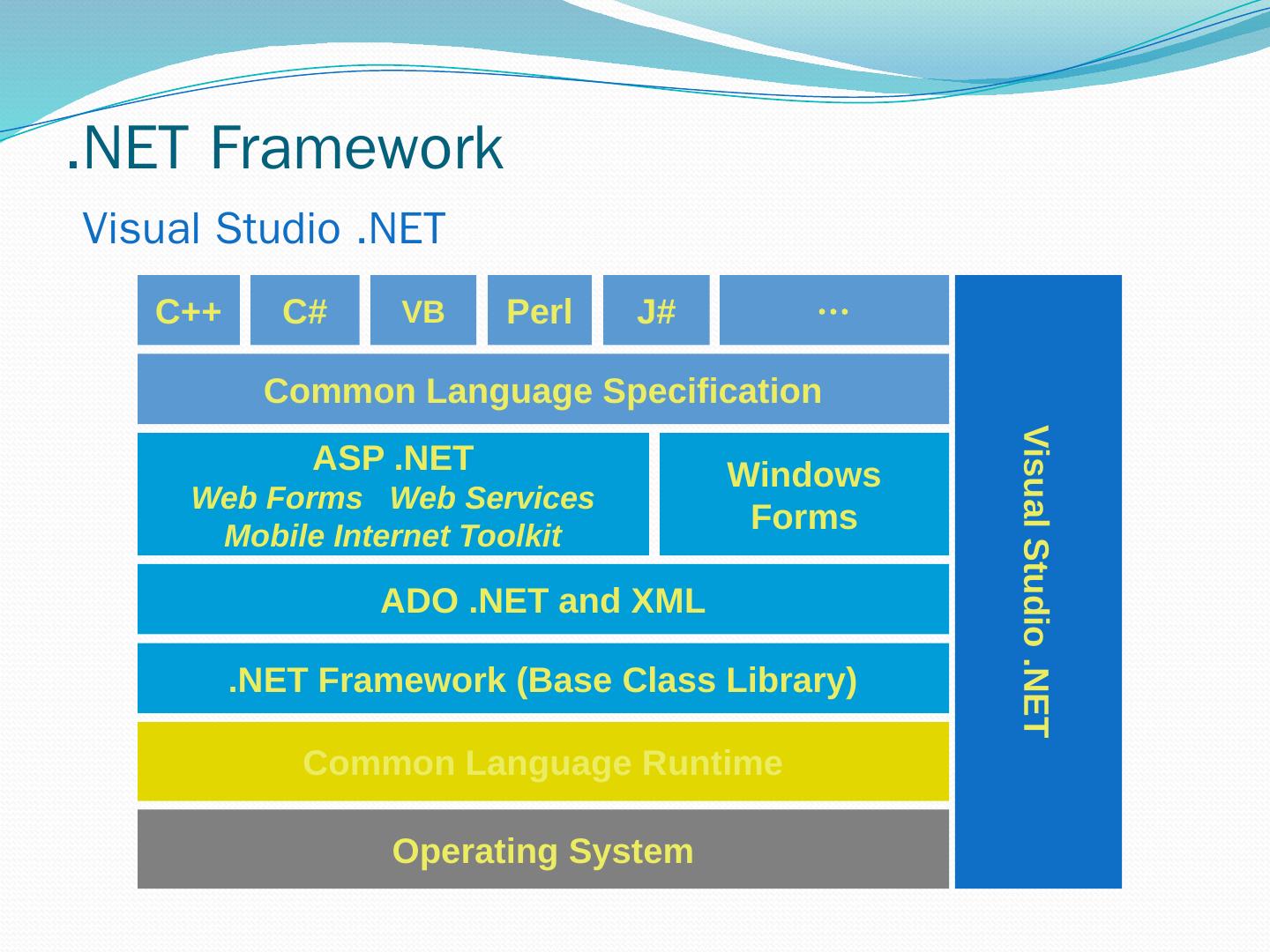 C#. VB.NET. Perl. J# … Use your favorite language .NET Framework Common Language Specification. Operating System. Common Language Runtime.