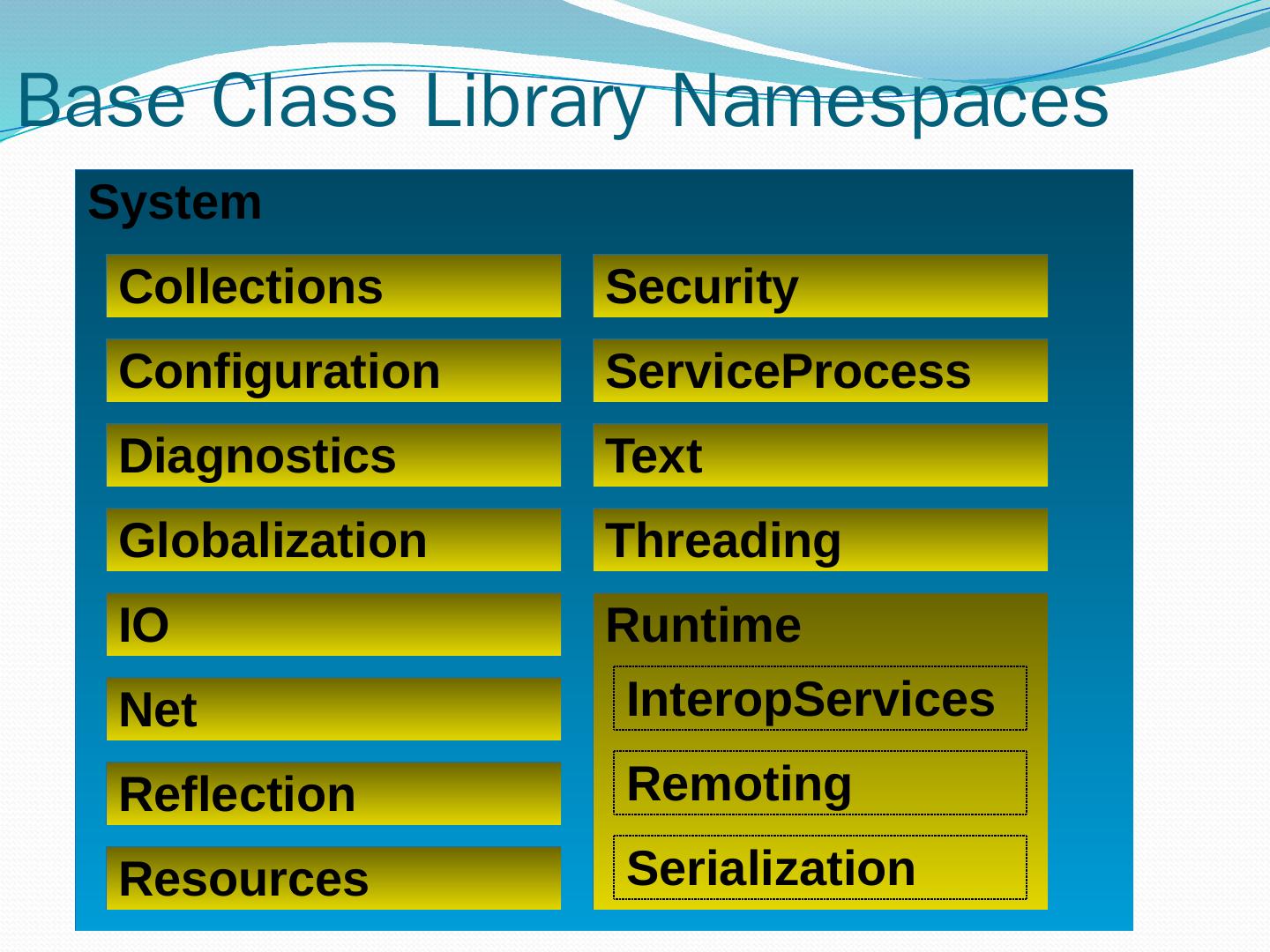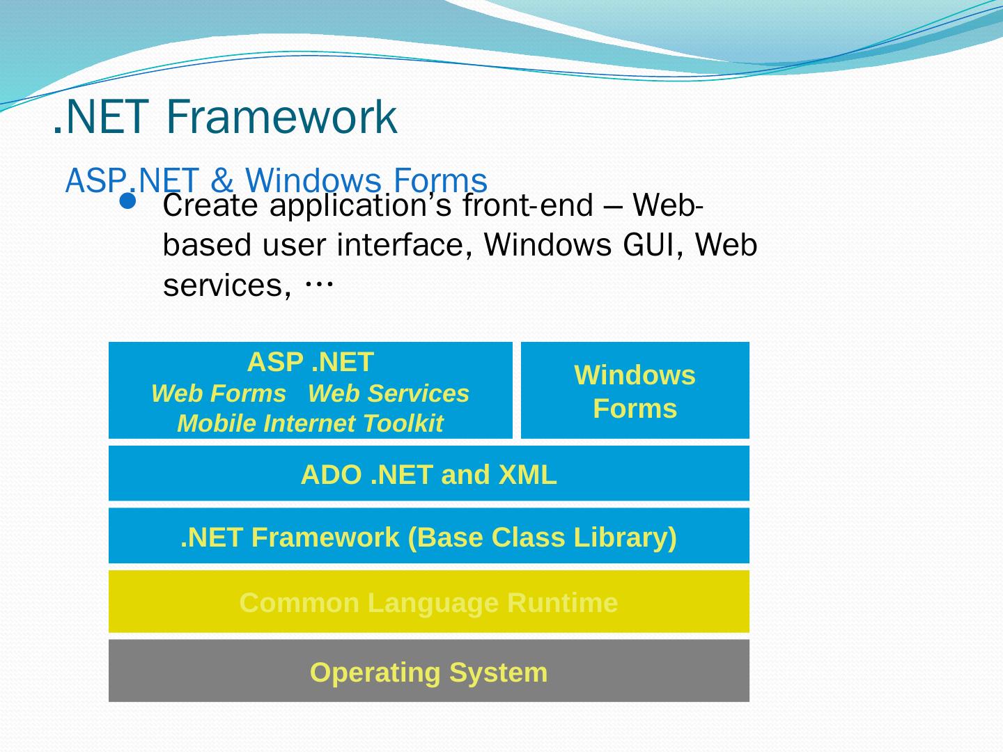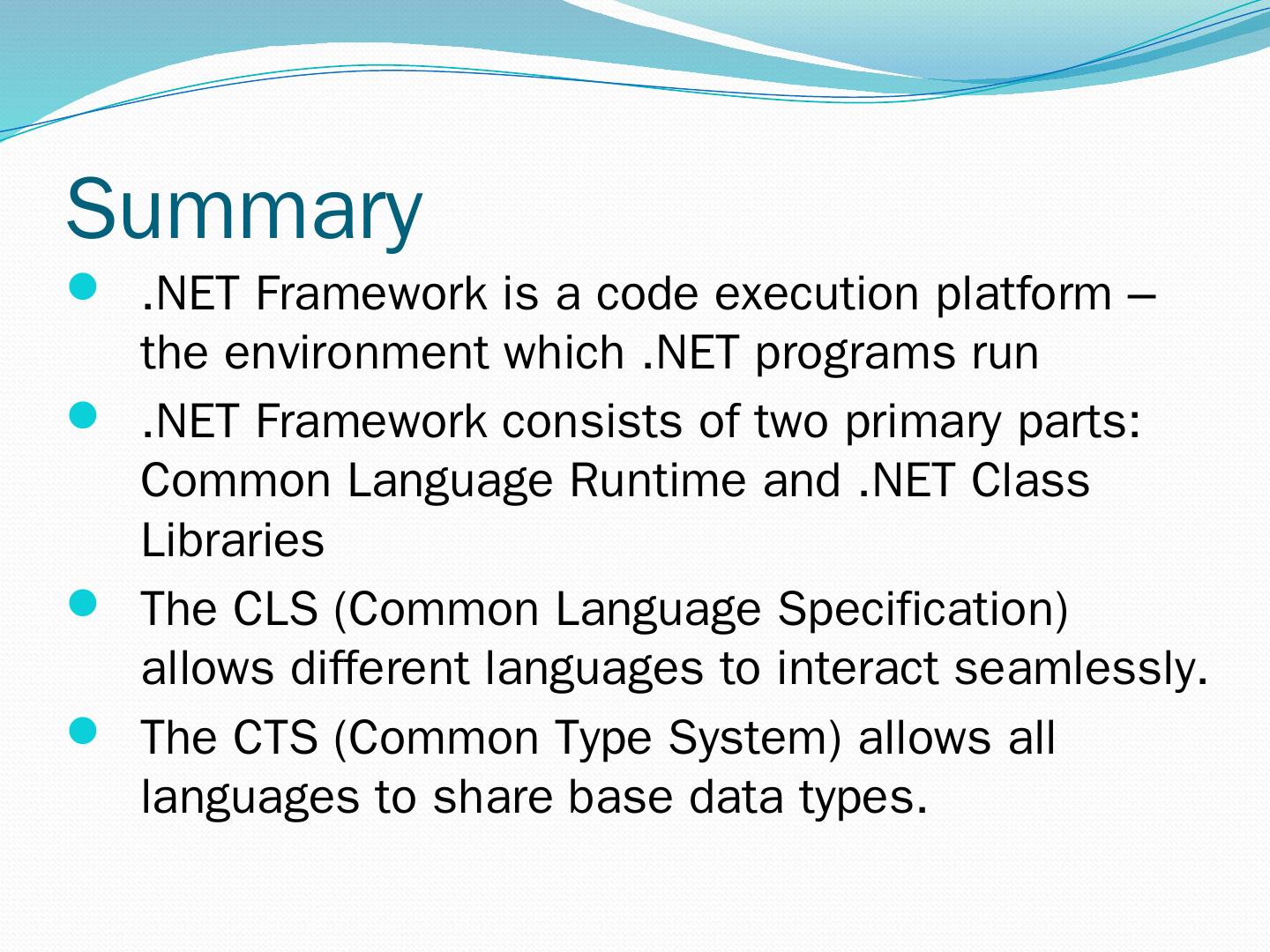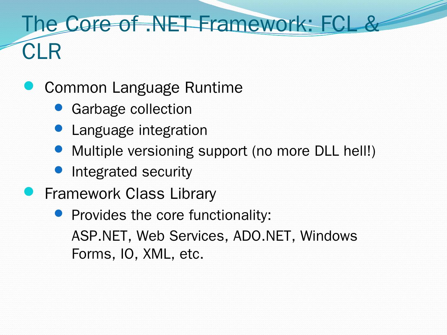 C#. VB.NET. Perl. J# … Use your favorite language .NET Framework Common Language Specification. Operating System. Common Language Runtime.