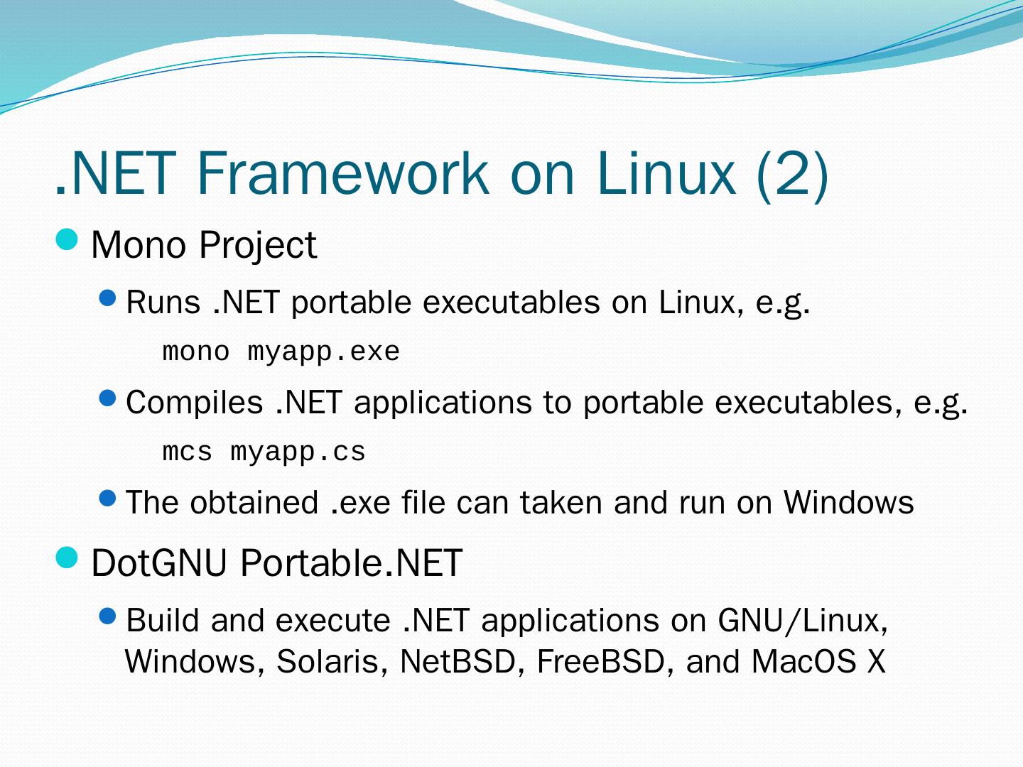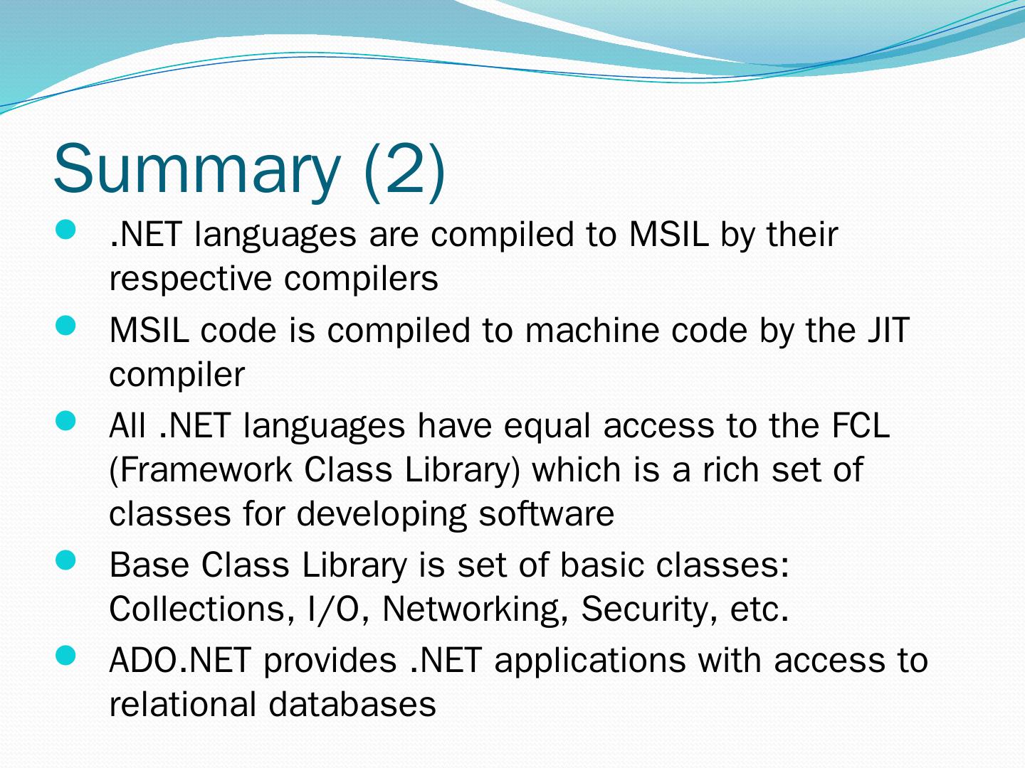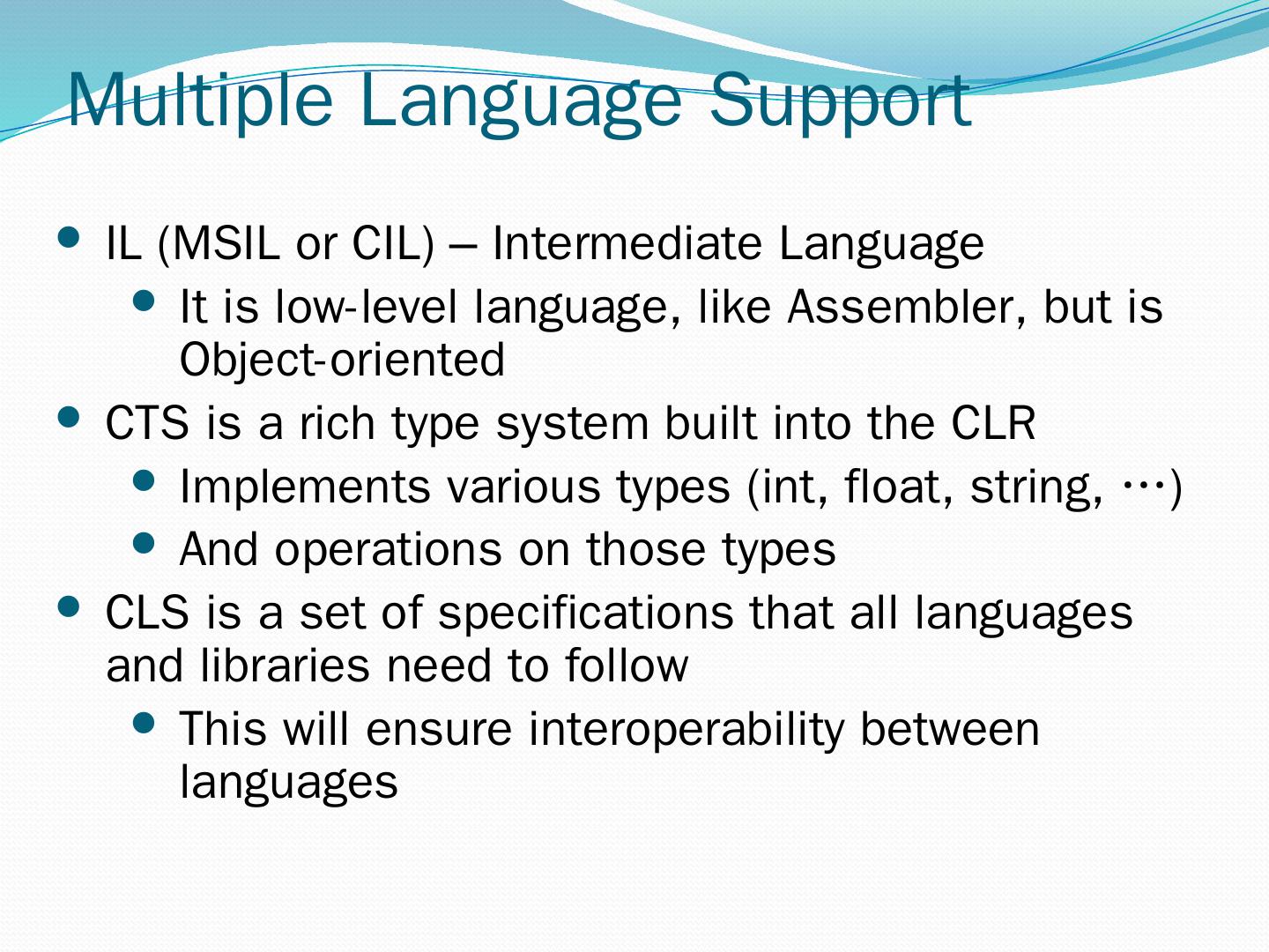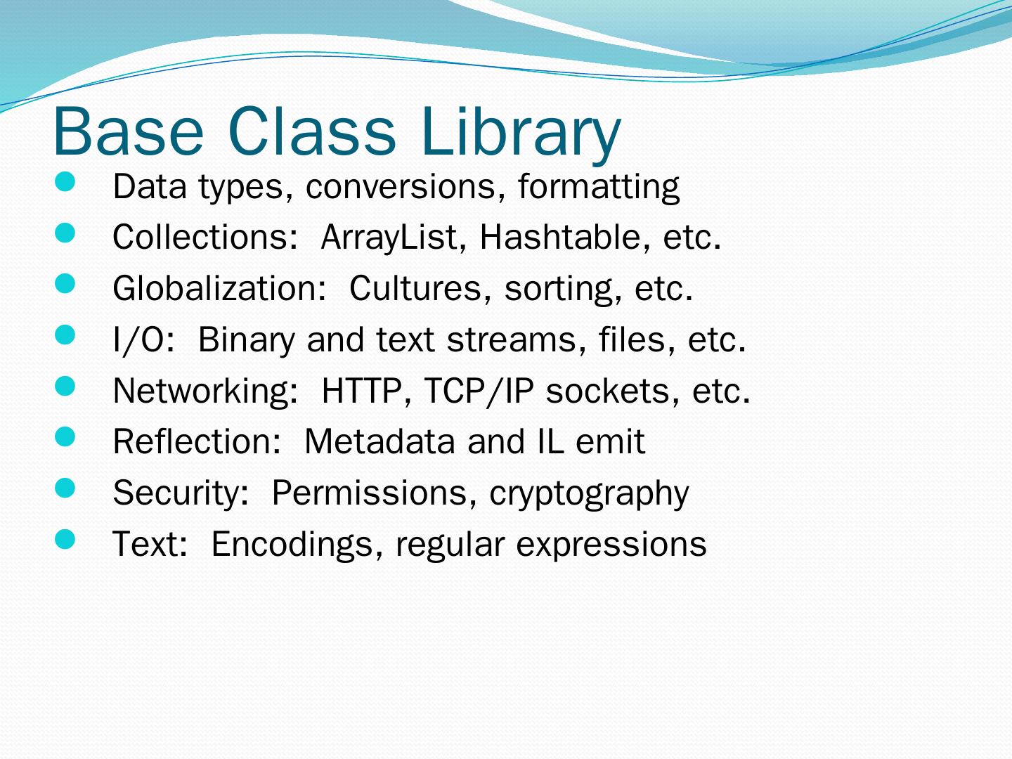 C#. VB.NET. Perl. J# … Use your favorite language .NET Framework Common Language Specification. Operating System. Common Language Runtime.