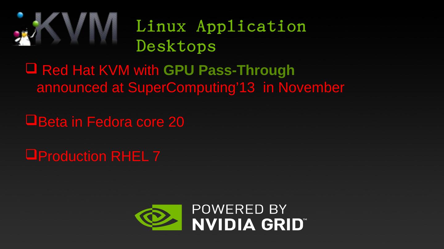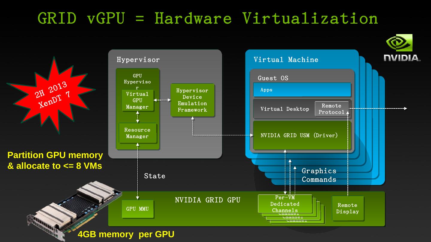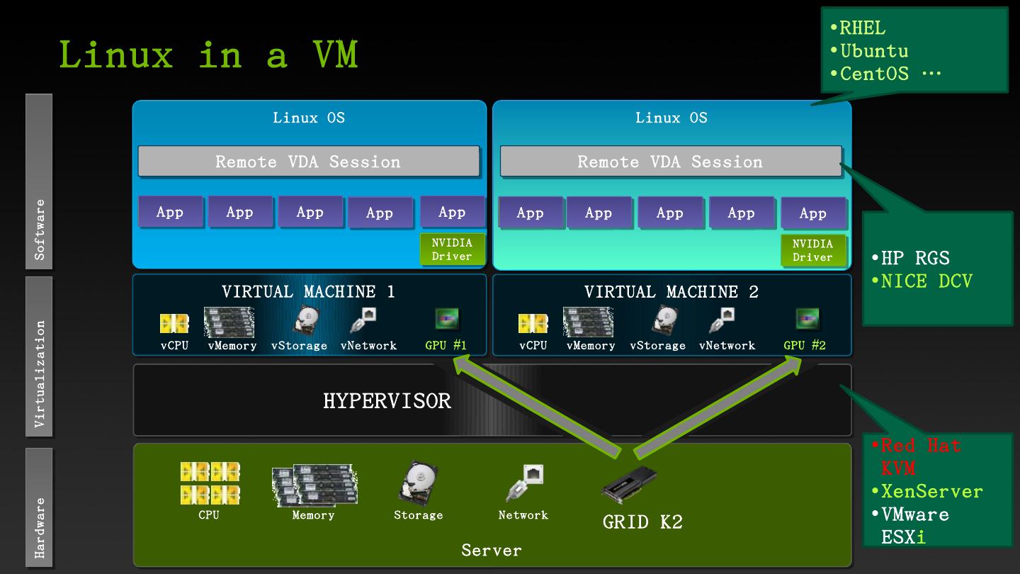 PARTITION GRID K2 GPU FRAMEBUFFER ... Linux Application Desktops ... GPU #2. Linux OS. NVIDIA Driver. App. App. App. App. App. Linux OS. Virtual Driver.