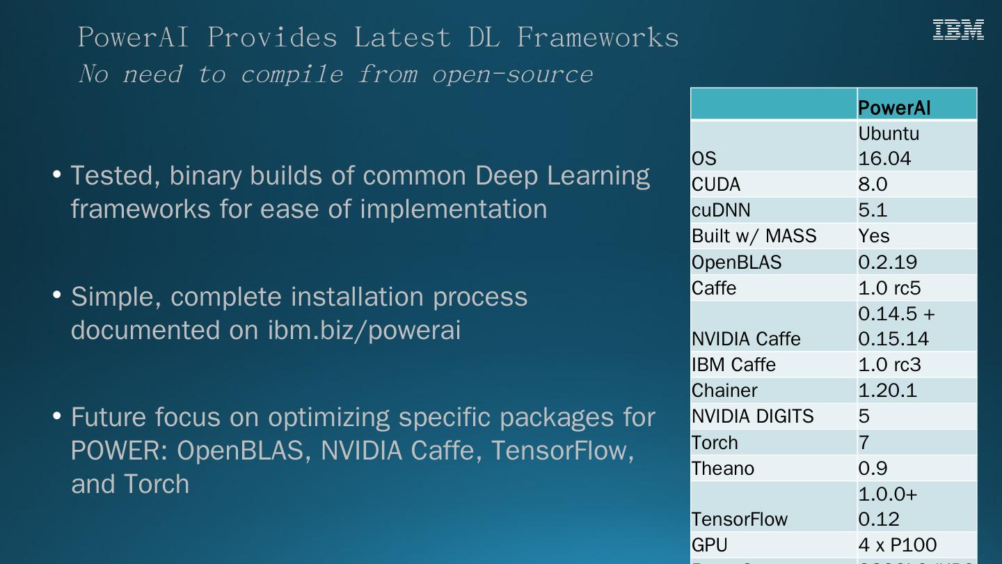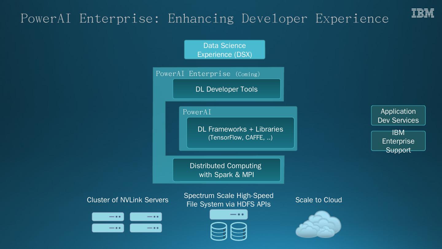 Chainer. PowerAI. PowerAI Enterprise: Enhancing Developer Experience. DL Frameworks + Libraries. (TensorFlow, CAFFE, ..) Data Science Experience (DSX).