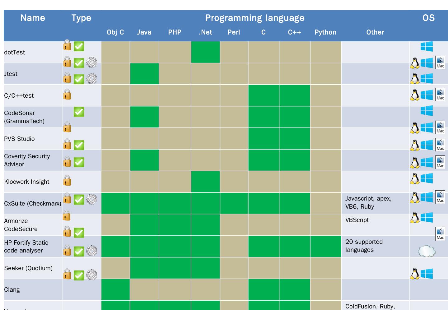 OWASP LAPSE. PMD, JavaScript, XML, XSL, + Commercial plugins. PREfast (microsoft). RIPS-Scanner. Sonarqube, Delphi, Drools, Javascript, XML … Splint.