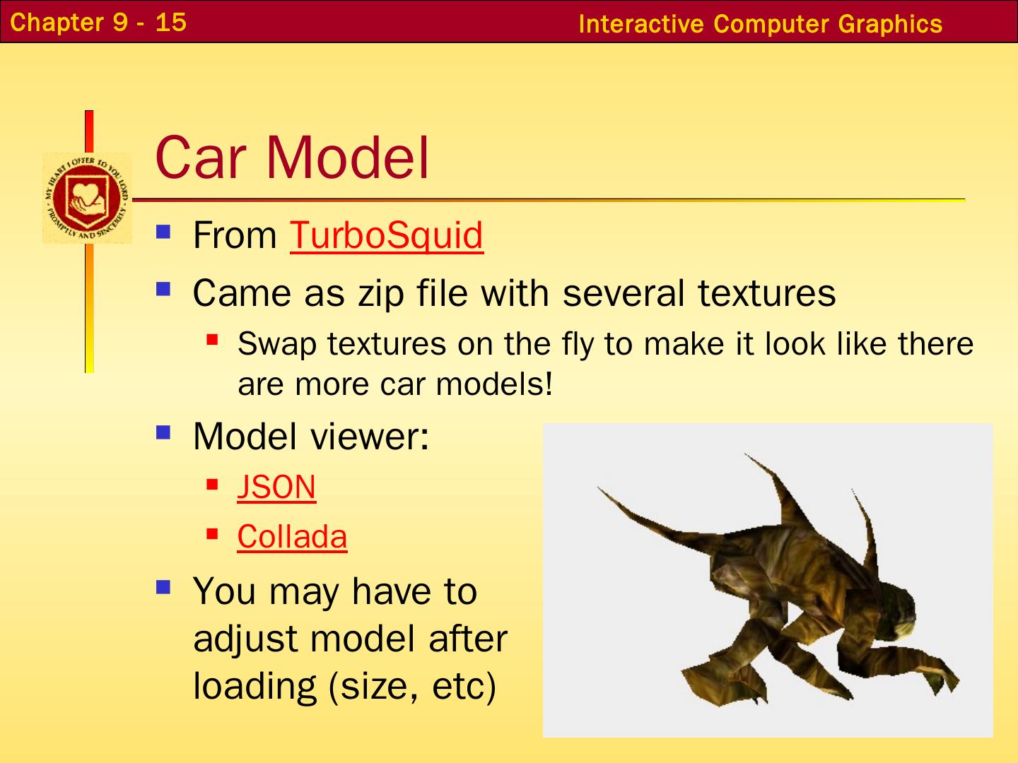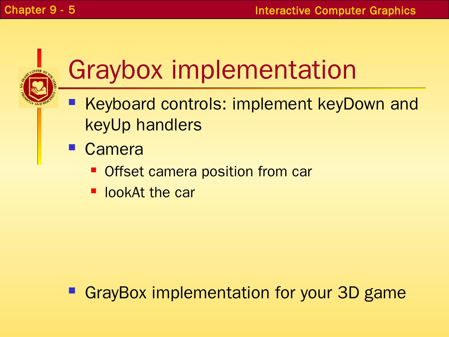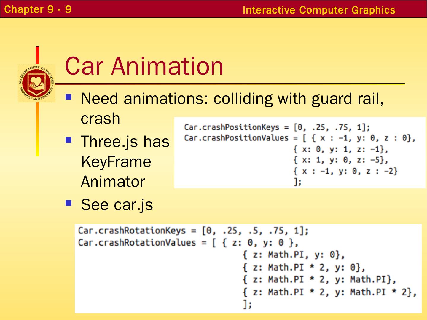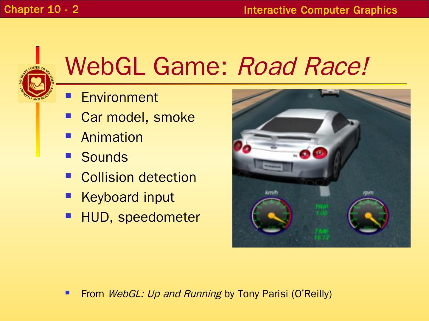 A WebGL. Game. With Three.js. Interactive Computer Graphics. Chapter 10 - 2. WebGL Game: Road ... From WebGL: Up and Running by Tony Parisi (O'Reilly).