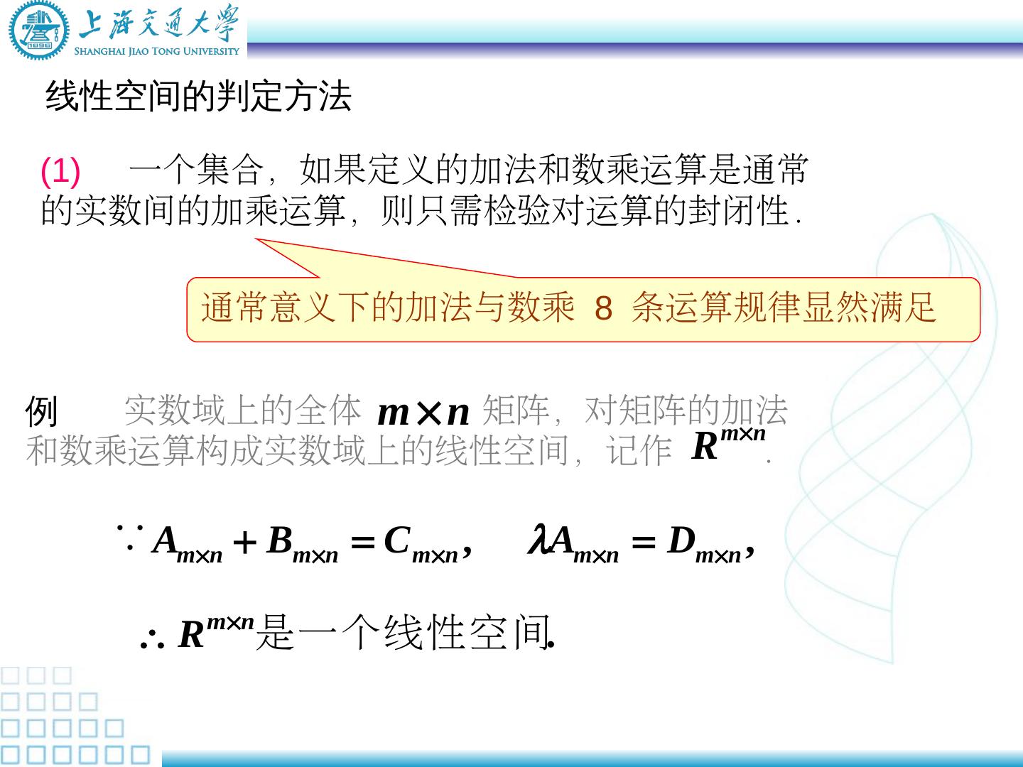 线性空间是线性代数最基本的概念之一,也是一个抽象的概念,它是向量空间概念 .... 次线性方程组AX=0 的基础解系与其解集构成线性子空间的基、维数是什么关系?