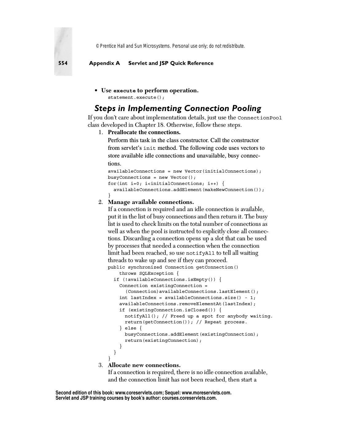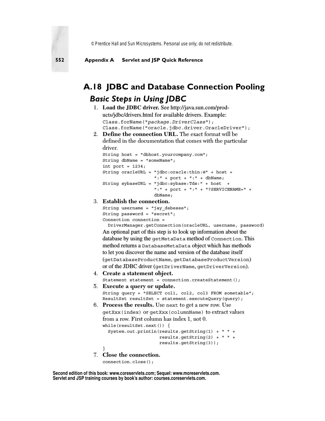 1 .© Prentice Hall and Sun Microsystems. Personal use only; do not redistribute. Servlet and JSP Chapter Quick Reference Online version of this first edition of Core Servlets and JavaServer Pages is free for personal use. For more information, please see: • Second edition of the book: http://www.coreservlets.com. • Sequel: http://www.moreservlets.com. • Servlet and JSP training courses from the author: http://courses.coreservlets.com.