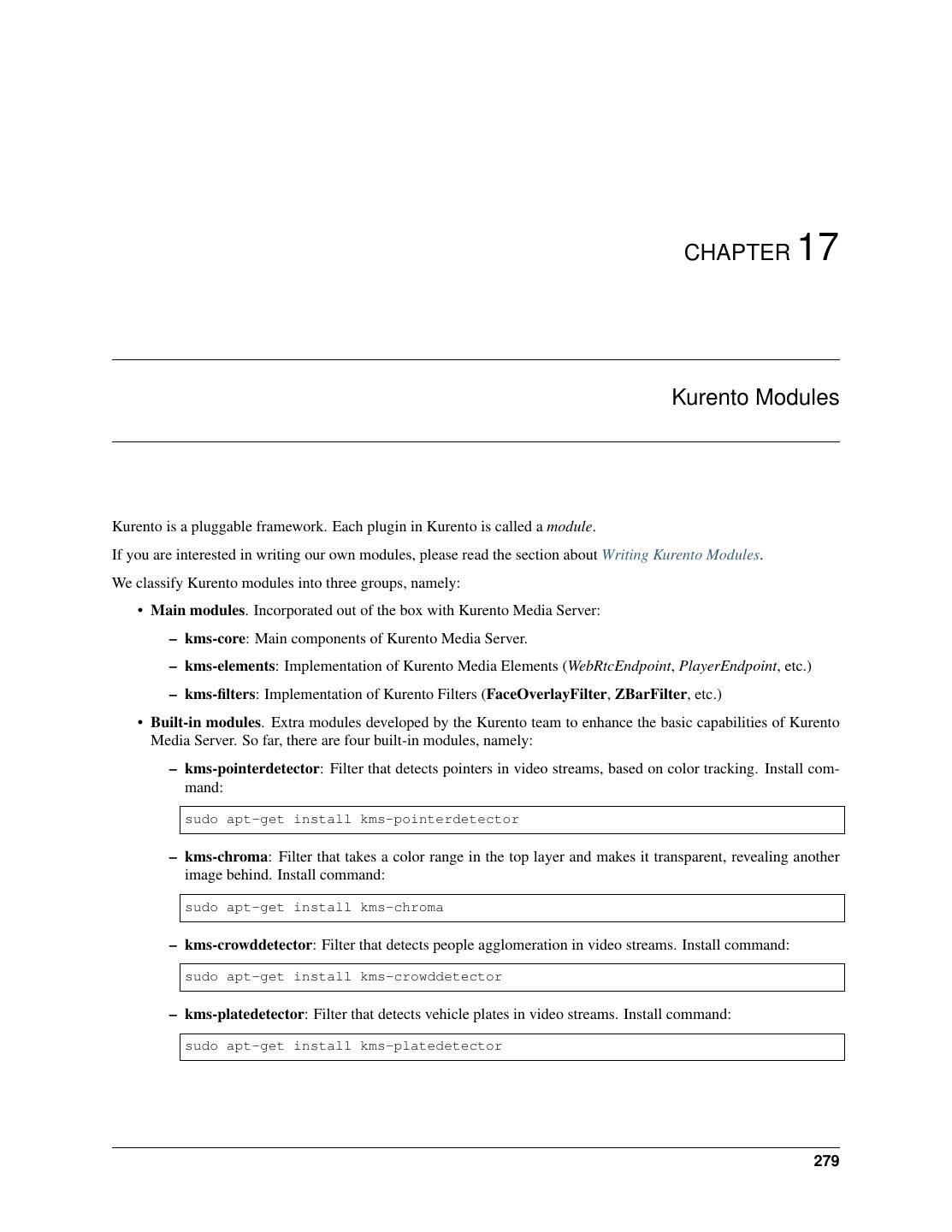 26 .Kurento Documentation, Release 6.9.0 18 Chapter 4. Installation Guide