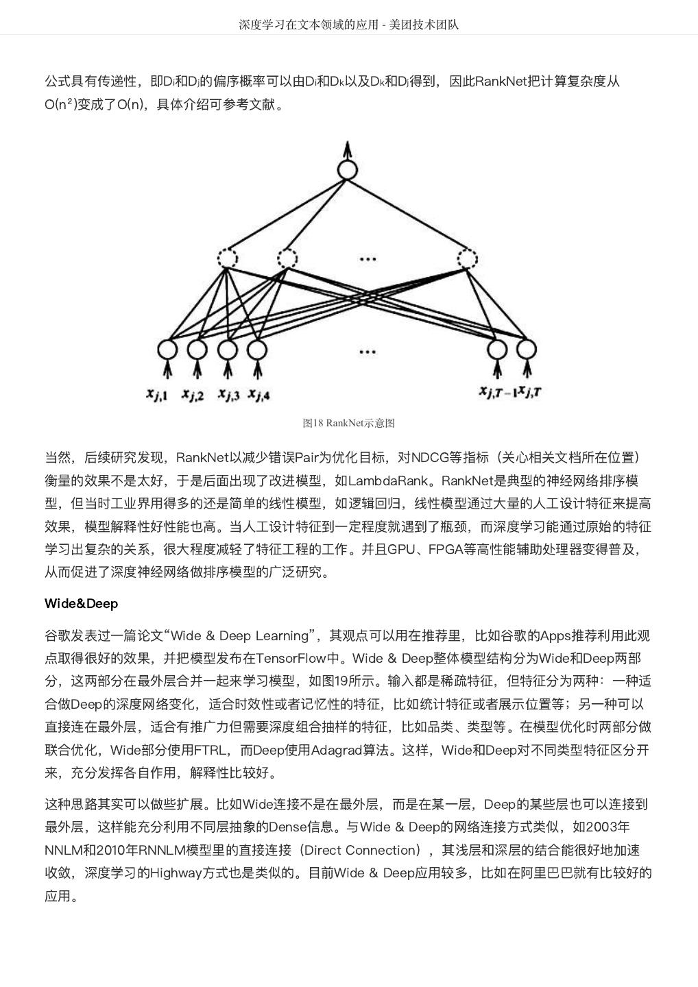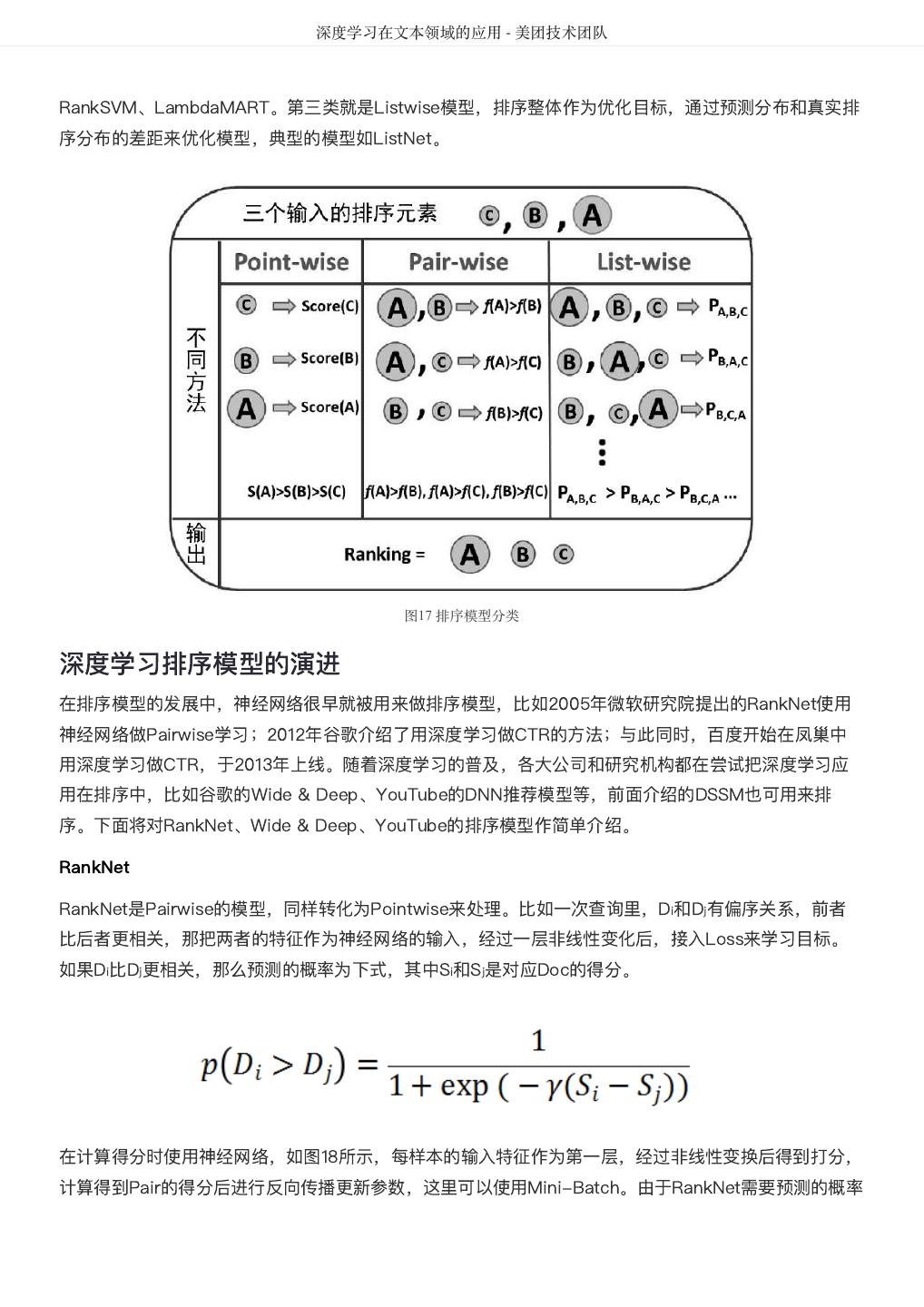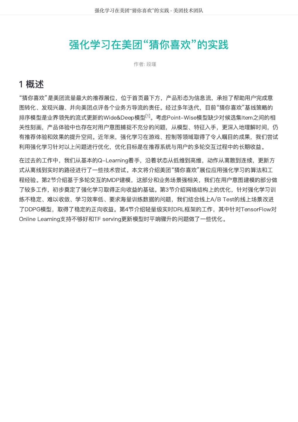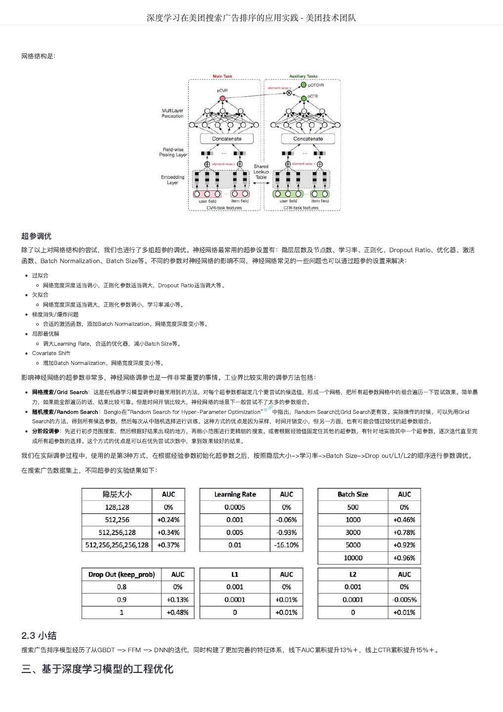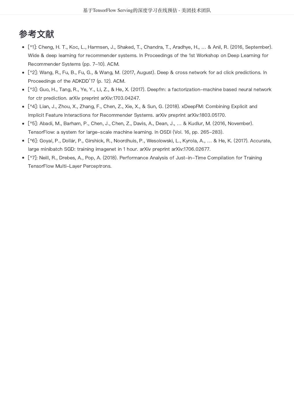 15 . 美团“猜你喜欢”深度学习排序模型实践 - 美团技术团队 [1]: Mu Li, David G. Andersen, Alexander Smola, and Kai Yu. Communication Efficient Distributed Machine Learning with the Parameter Server. NIPS, 2014b. [2]: Rich Caruana. Multitask Learning. Betascript Publishing, 1997. [3]: Xiangnan He and Tat-Seng Chua. Neural Factorization Machines for Sparse Predictive Analytics. Proceedings of the 40th International ACM SIGIR conference on Research and Development in Information Retrieval(2017). [4]: Guorui Zhou, Chengru Song, et al. Deep Interest Network for Click-Through Rate Prediction.arXiv preprint arXiv:1706.06978,2017. [5]: Dzmitry Bahdanau, Kyunghyun Cho, and Yoshua Bengio. Neural Machine Translation by Jointly Learning to Align and Translate. ICLR ’15, May 2015. [6]: H.-T. Cheng, L. Koc, J. Harmsen, T. Shaked, T. Chandra, H. Aradhye, G. Anderson, G. Corrado, W. Chai, M. Ispir, et al. Wide & deep learning for recommender systems. arXiv preprint arXiv:1606.07792, 2016. 作者简介 绍哲,2015年校招入职原美团, 主要从事推荐排序模型相关的工作。 刘锐,先后在百度、阿里巴巴从事推荐业务相关工作,现就职于美团平台推荐技术中心,专注深度学习模型的研发工 作。 招聘 美团平台推荐技术中心负责美团首页“猜你喜欢”、运营区、酒店旅游推荐等公司重要的业务场景,长期 致力于推荐场景的深度优化,在挖掘用户吃喝玩乐需求的同时提供更好的产品体验。美团平台推荐技术中 心高端算法职位持续招聘中! 期待你的加入,与我们一起解决技术与业务问题,快乐工作,共同成长。 简历请投递至:caohao#meituan.com