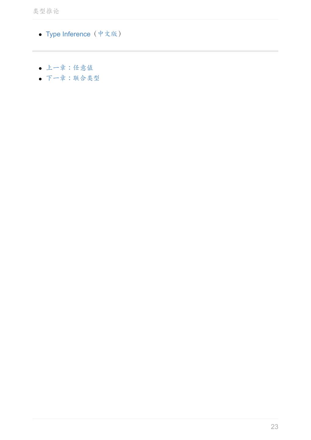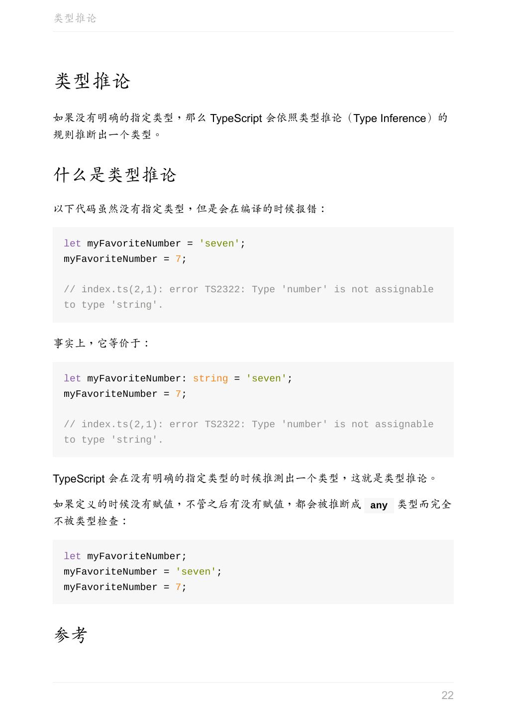 23 .类型推论 Type Inference(中文版) 上一章:任意值 下一章:联合类型 23