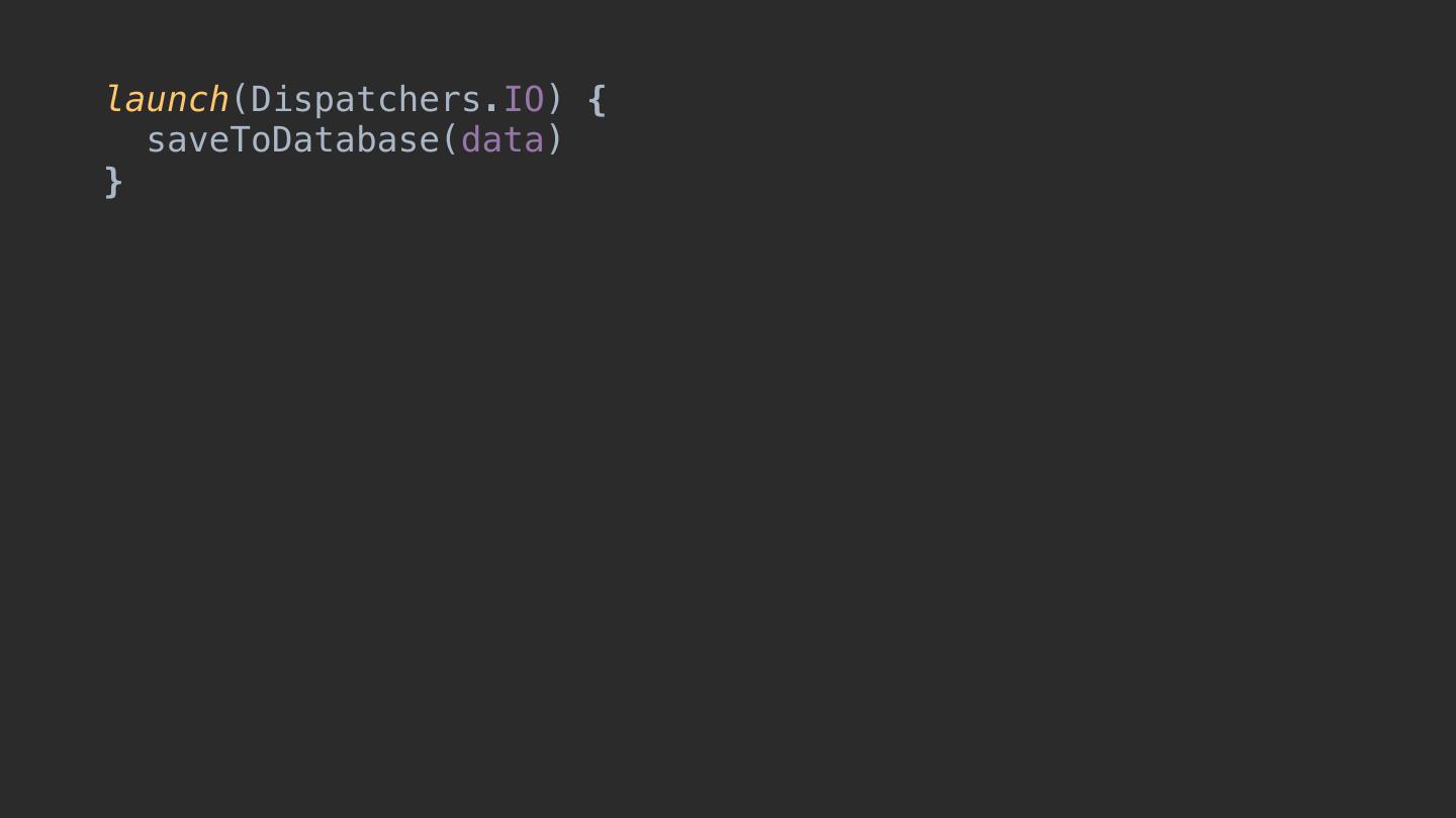 17 .launch(Dispatchers.IO) { saveToDatabase(data) }