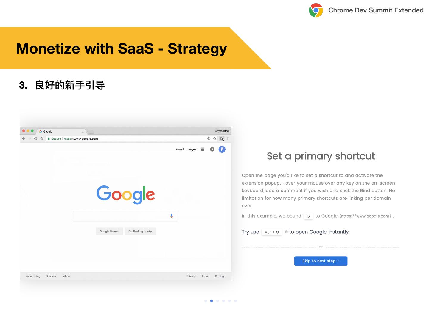 7 . Chrome Dev Summit Extended Monetize with SaaS - Strategy 3. 良好的新⼿手引导