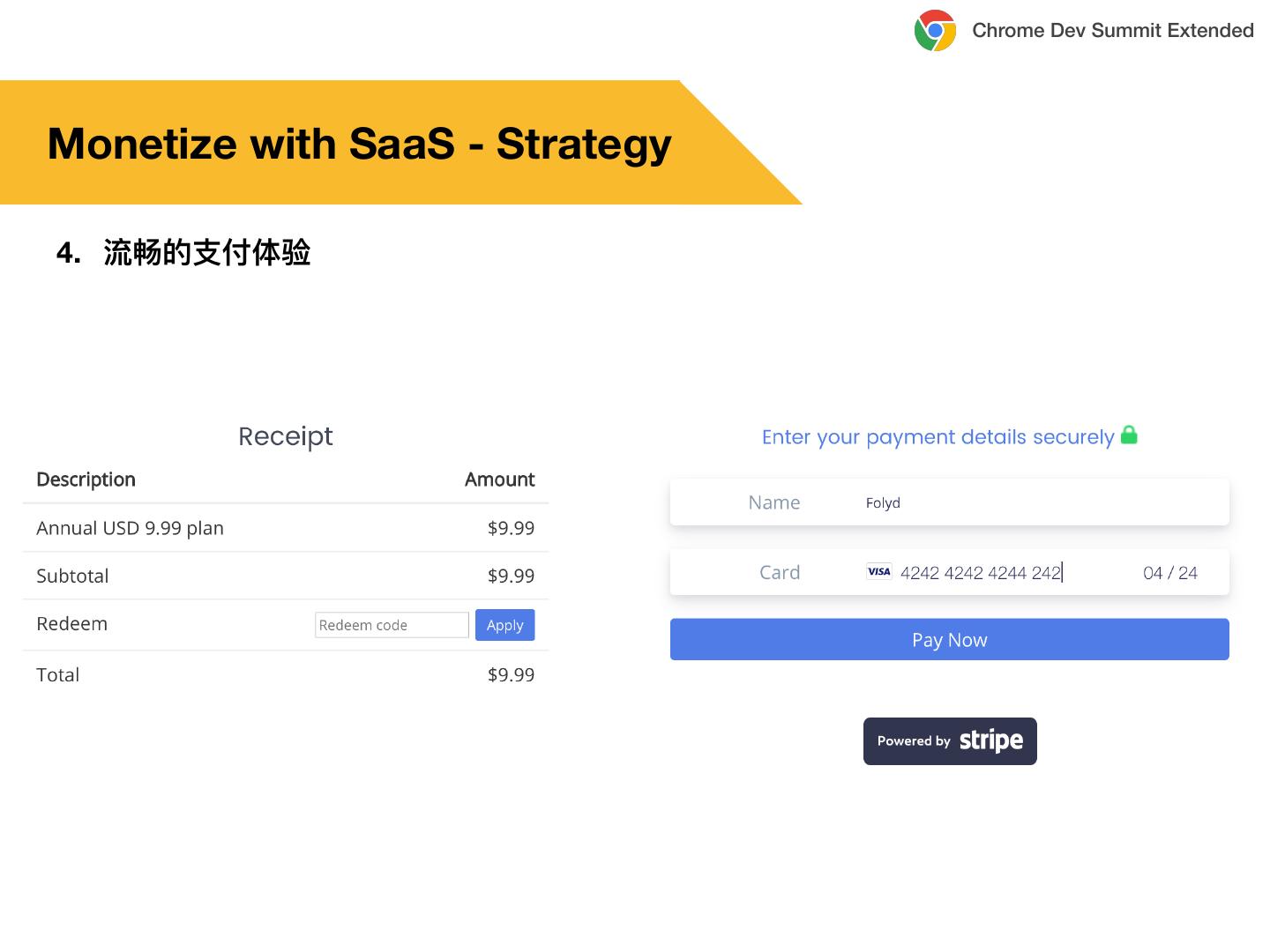 9 . Chrome Dev Summit Extended Monetize with SaaS - Strategy 4. 流畅的⽀支付体验