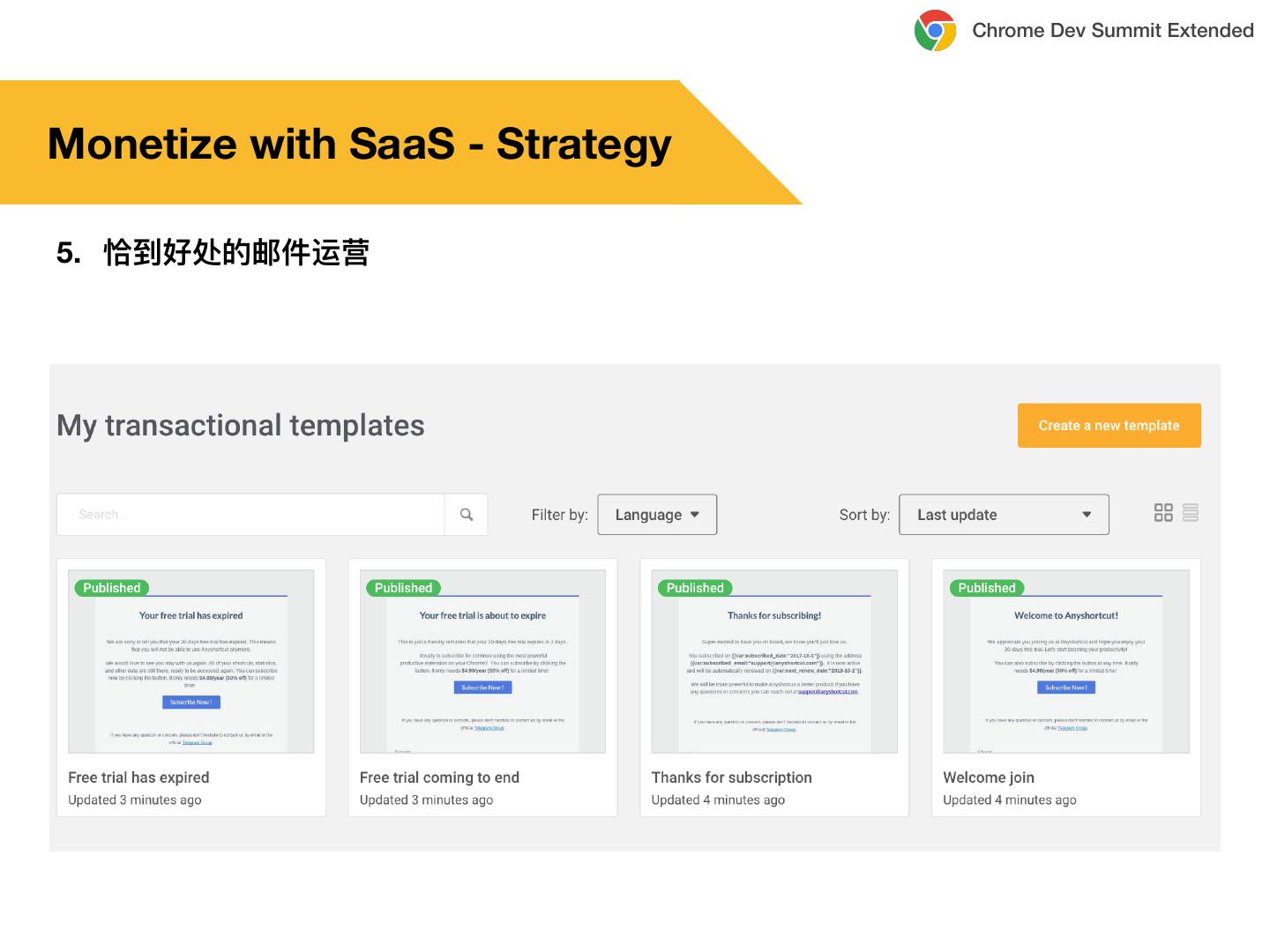 10 . Chrome Dev Summit Extended Monetize with SaaS - Strategy 5. 恰到好处的邮件运营