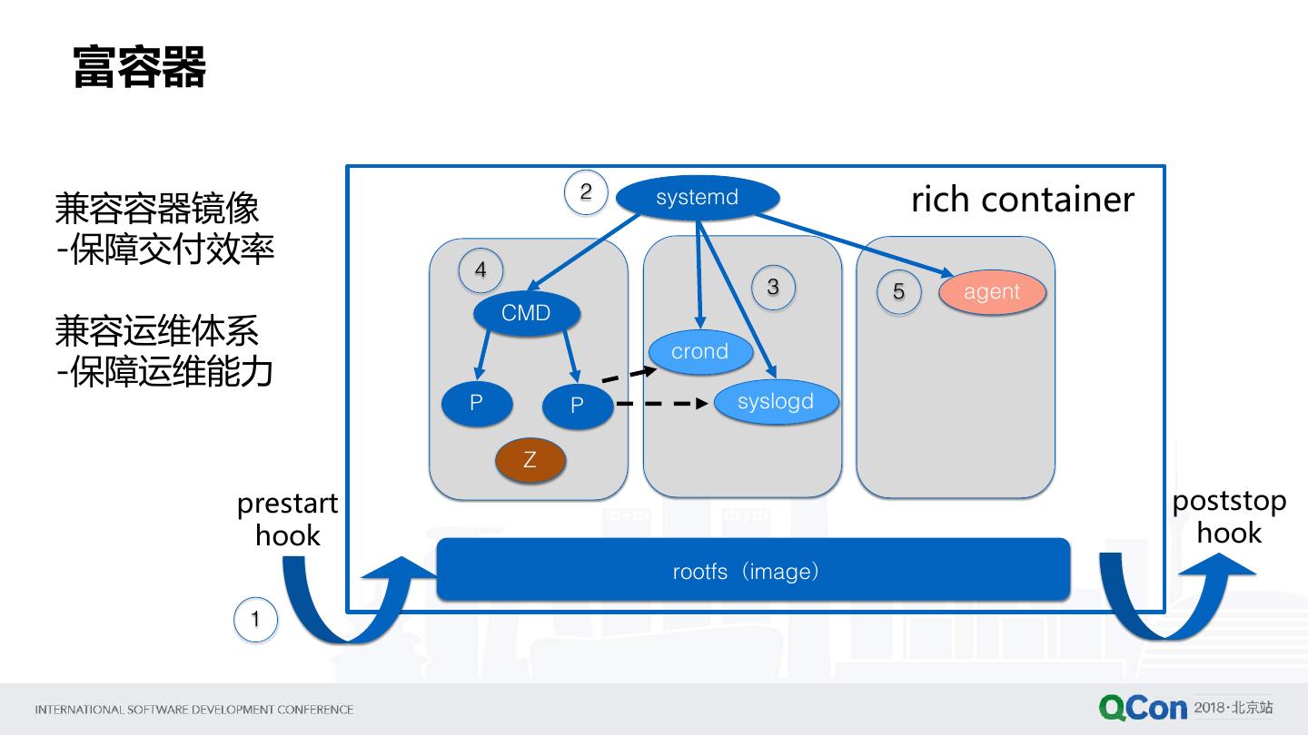 9 .富容器 兼容容器镜像 2 systemd rich container -保障交付效率 4 3 5 agent CMD 兼容运维体系 crond -保障运维能力 P P syslogd Z prestart poststop hook hook rootfs(image) 1