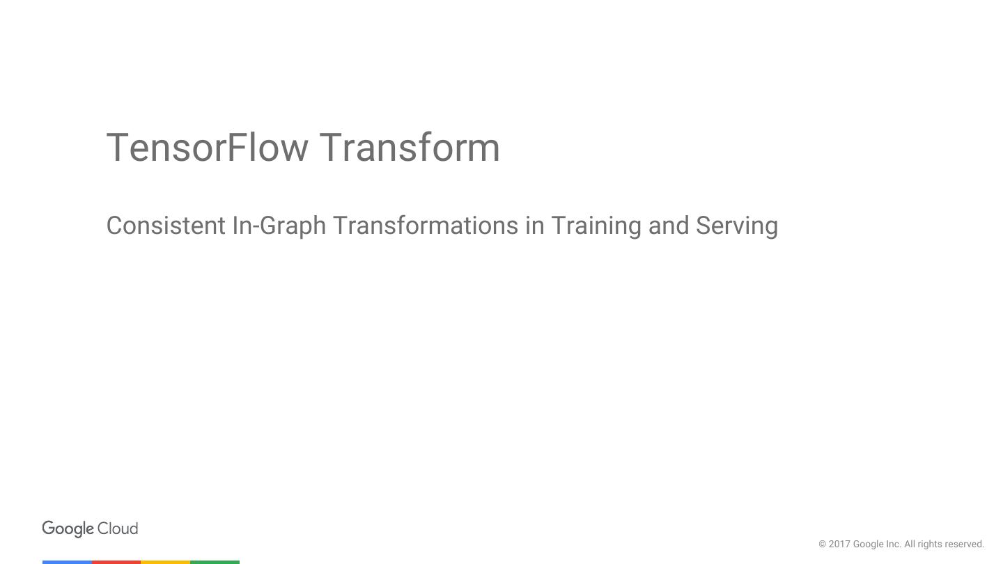 14 .TensorFlow Transform Consistent In-Graph Transformations in Training and Serving © 2017 Google Inc. All rights reserved.