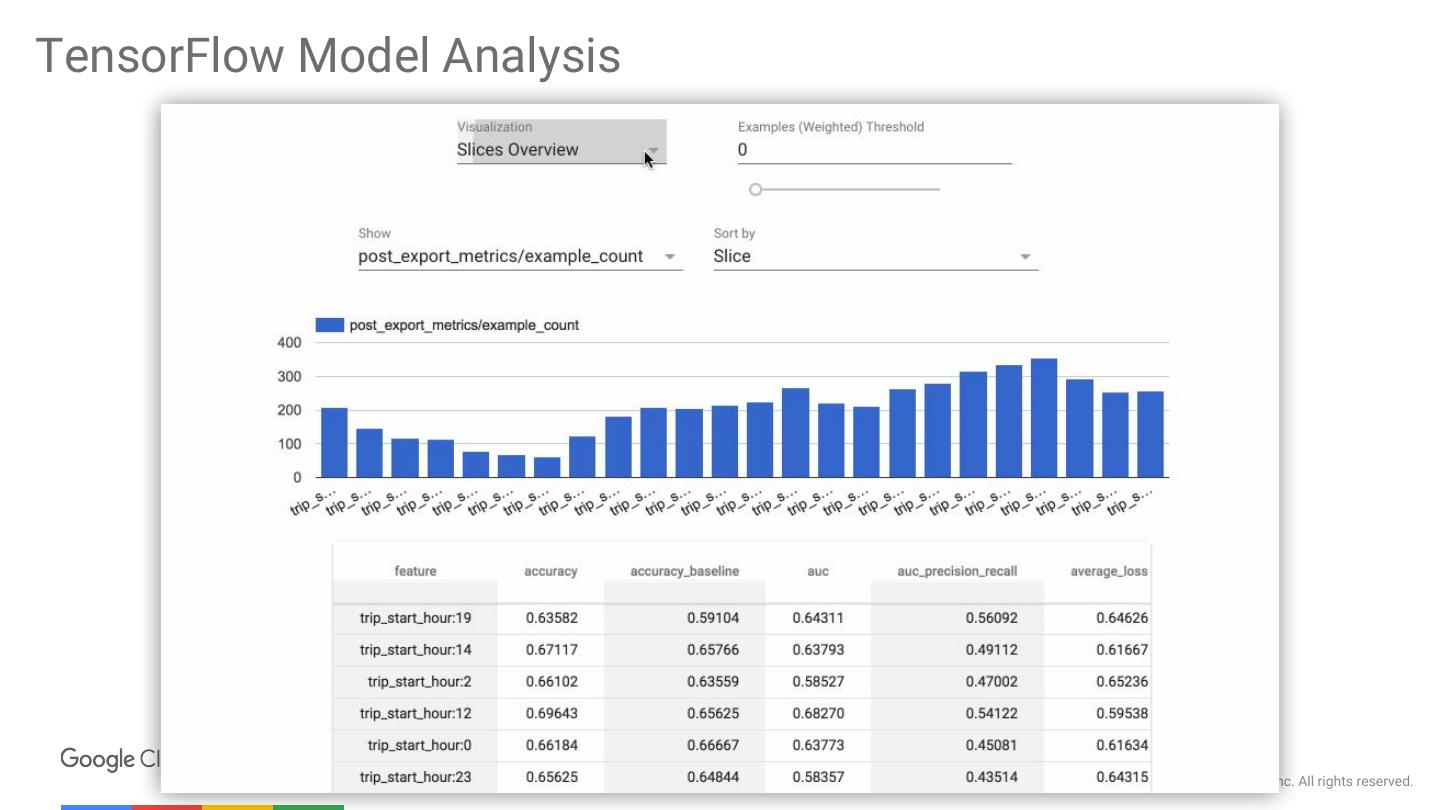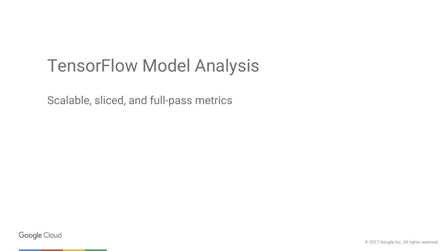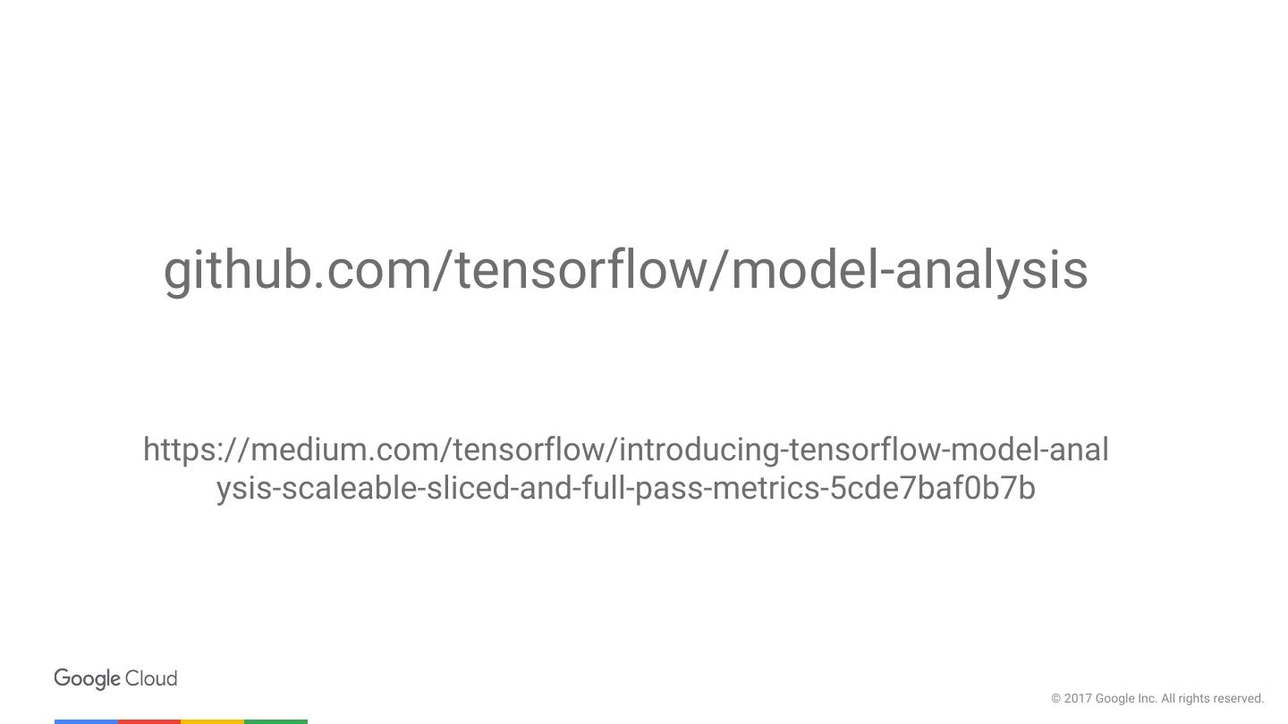 25 . github.com/tensorflow/model-analysis https://medium.com/tensorflow/introducing-tensorflow-model-anal ysis-scaleable-sliced-and-full-pass-metrics-5cde7baf0b7b © 2017 Google Inc. All rights reserved.