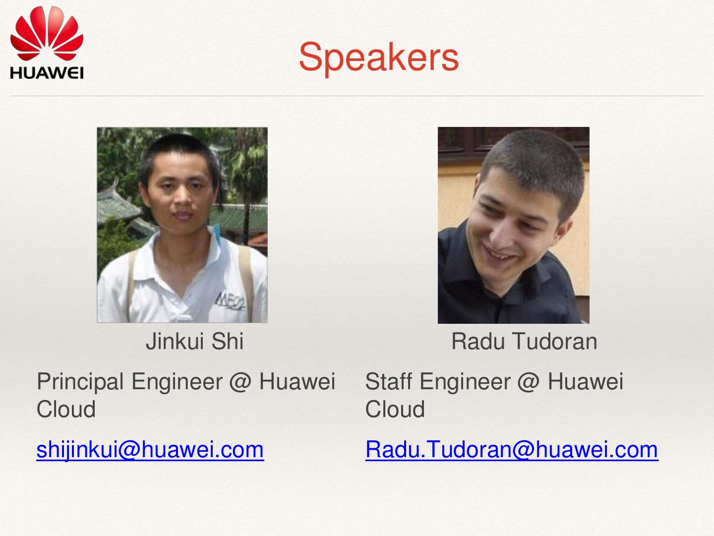 2 . Speakers Jinkui Shi Radu Tudoran Principal Engineer @ Huawei Staff Engineer @ Huawei Cloud Cloud shijinkui@huawei.com Radu.Tudoran@huawei.com
