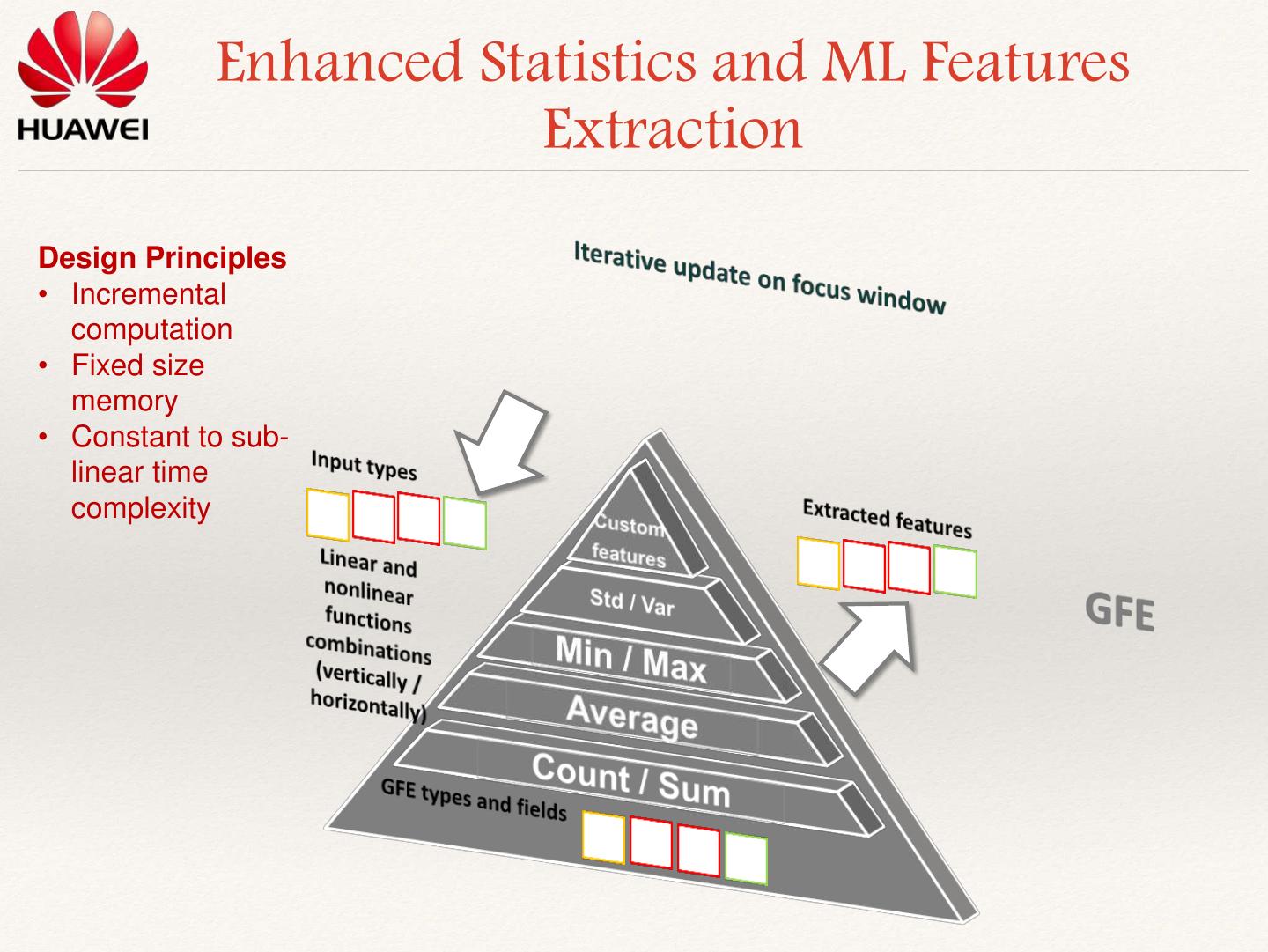 20 . Enhanced Statistics and ML Features Extraction Design Principles • Incremental computation • Fixed size memory • Constant to sub- linear time complexity