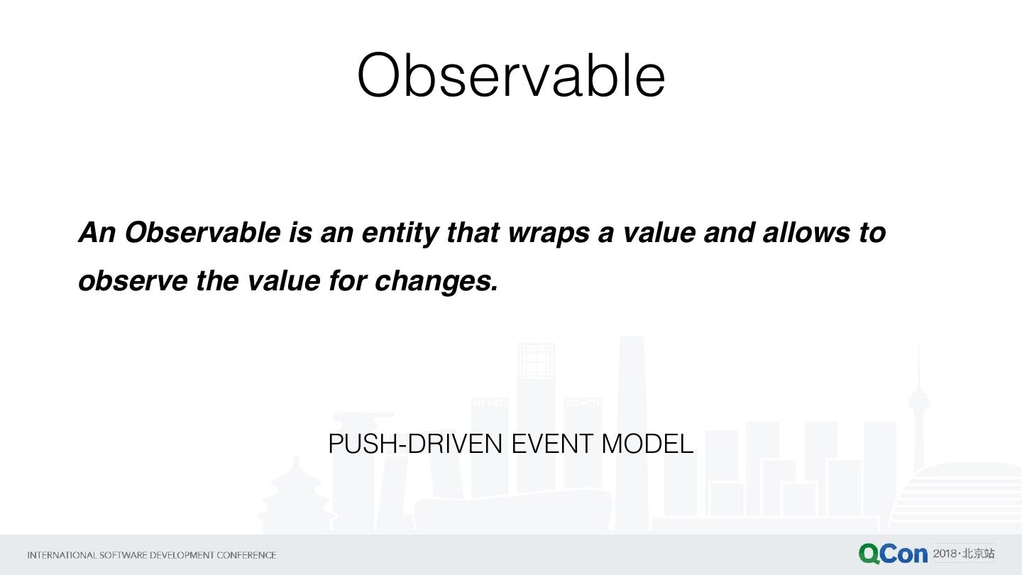 24 . Observable An Observable is an entity that wraps a value and allows to observe the value for changes. PUSH-DRIVEN EVENT MODEL