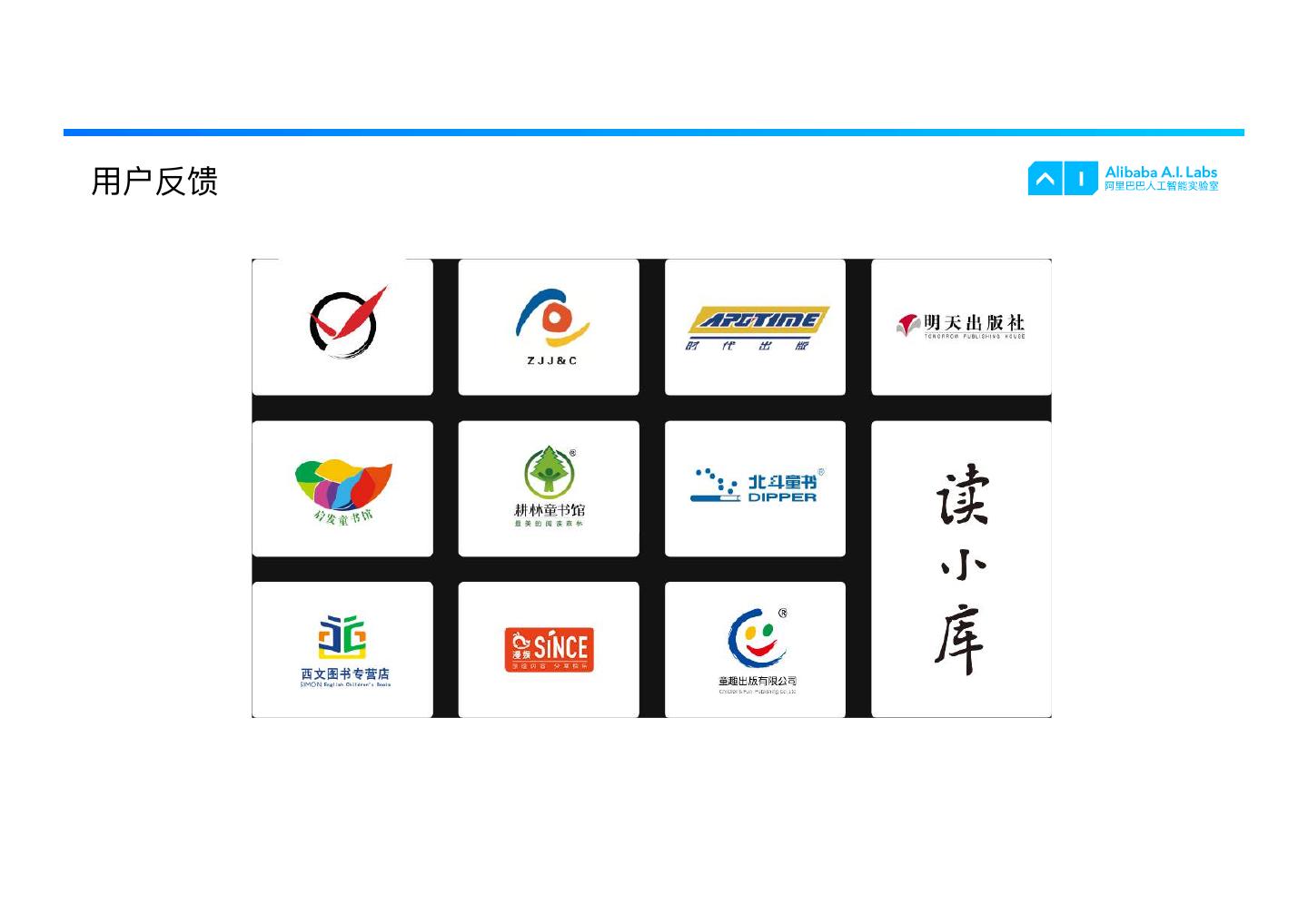 21 .⽤用户反馈 很有魔性,⼩孩很喜欢玩 ⼩孩跟着天猫精灵⽕眼读书超过⼀个⼩时 睡前喜欢听故事,不⽤我在读了 奶奶爷爷发⾳不标准,这个可以更好教他们英⽂ ⽗⺟不在的时候也可以玩识字卡⽚