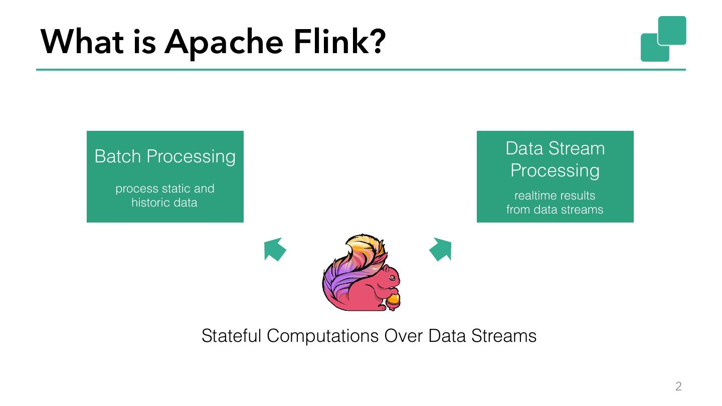 2 .What is Apache Flink? Batch Processing Data Stream Processing process static and realtime results historic data from data streams Stateful Computations Over Data Streams 2