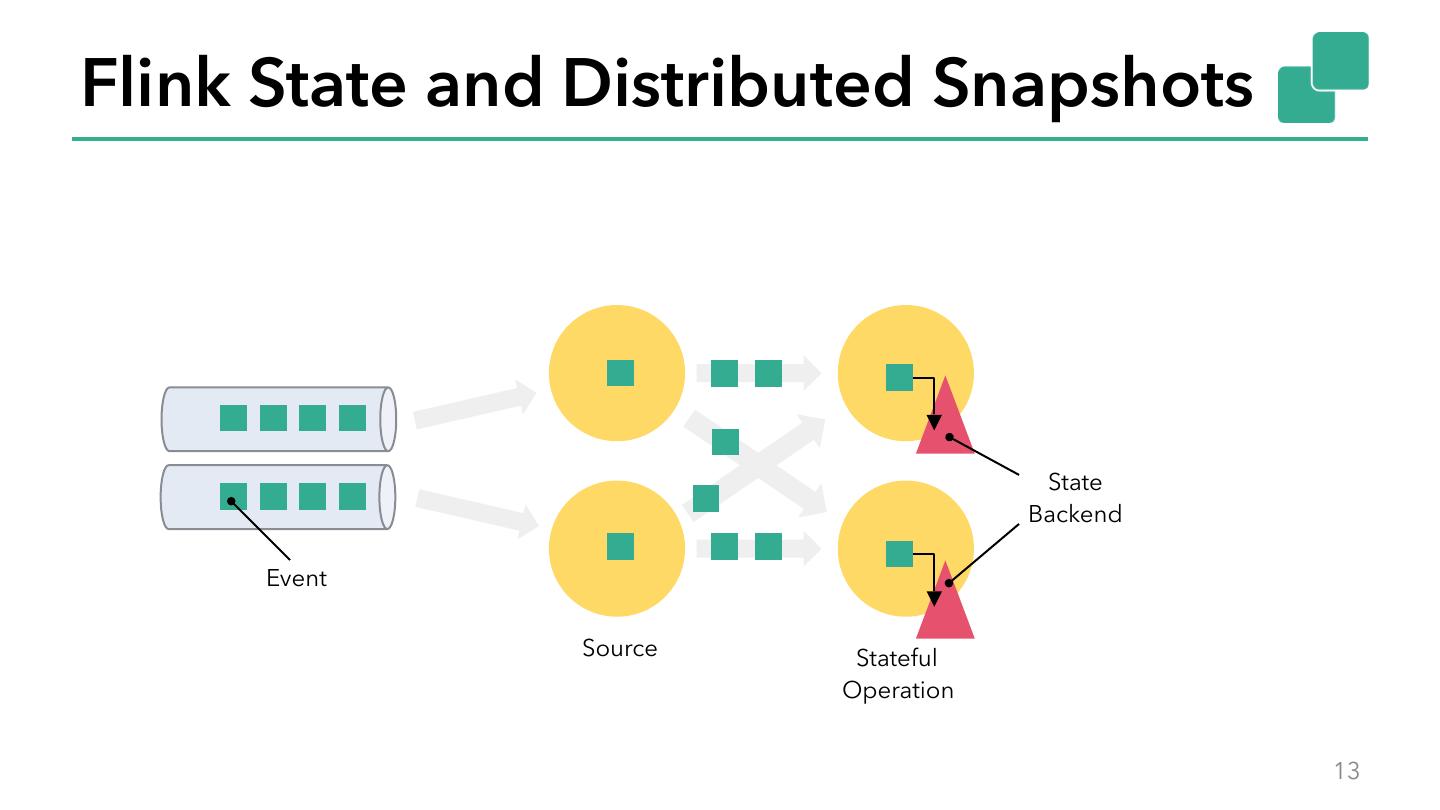 13 .Flink State and Distributed Snapshots State Backend Event Source Stateful Operation 13