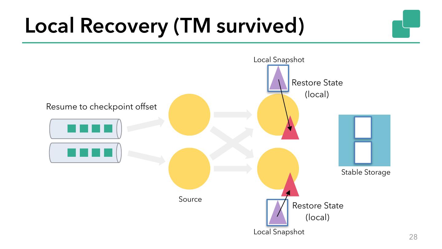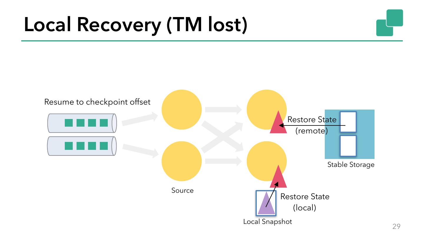 28 .Local Recovery (TM survived) Local Snapshot Restore State (local) Resume to checkpoint offset Stable Storage Source Restore State (local) Local Snapshot 28