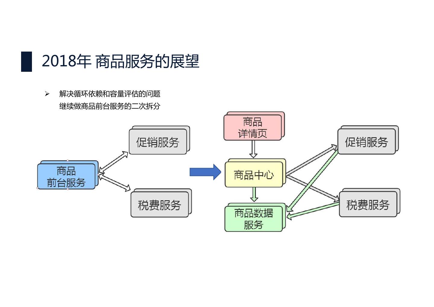 27 .2018年 商品服务的展望 Ø 解决循环依赖和容量评估的问题 继续做商品前台服务的二次拆分