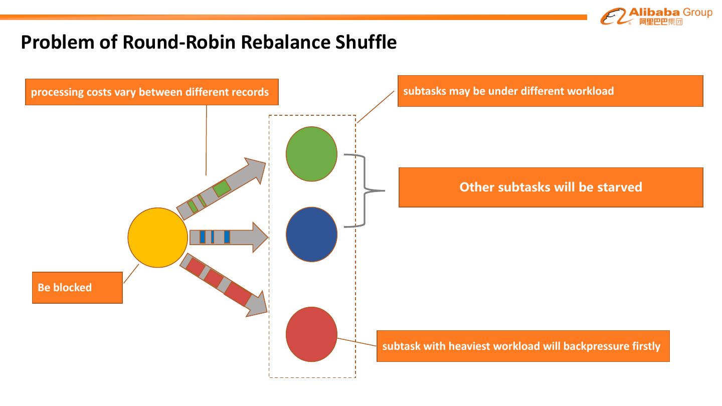21 .Problem of Round-Robin Rebalance Shuffle processing costs vary between different records subtasks may be under different workload Be blocked subtask with heaviest workload will backpressure firstly