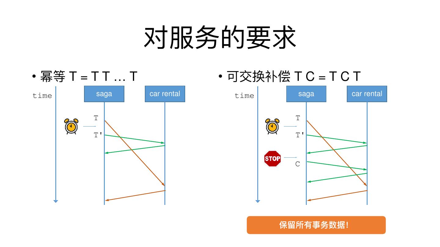 16 . 对服务的要求 • 幂等 T = T T … T time saga car rental T T'