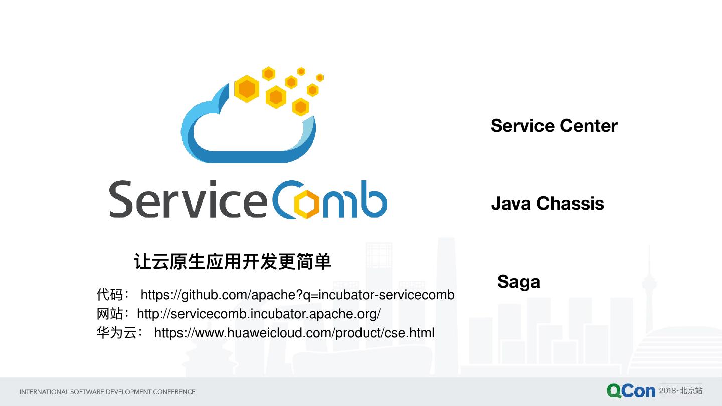 24 . Service Center Java Chassis 让云原⽣生应⽤用开发更更简单 Saga 代码: https://github.com/apache?q=incubator-servicecomb ⽹网站:http://servicecomb.incubator.apache.org/ 华为云: https://www.huaweicloud.com/product/cse.html