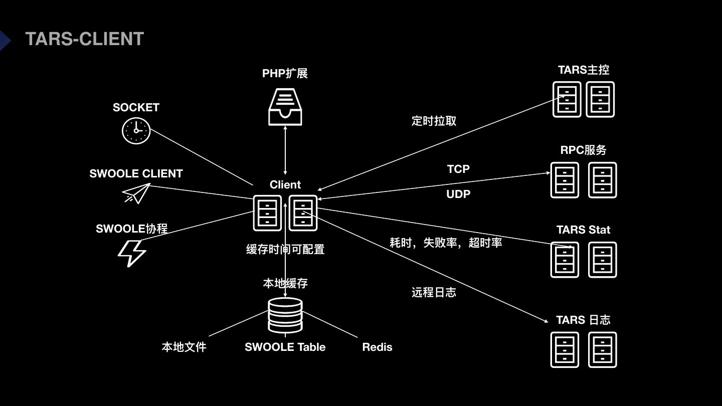 15 .TARS-CLIENT PHP TARS SOCKET RPC SWOOLE CLIENT TCP Client UDP SWOOLE TARS Stat TARS SWOOLE Table Redis
