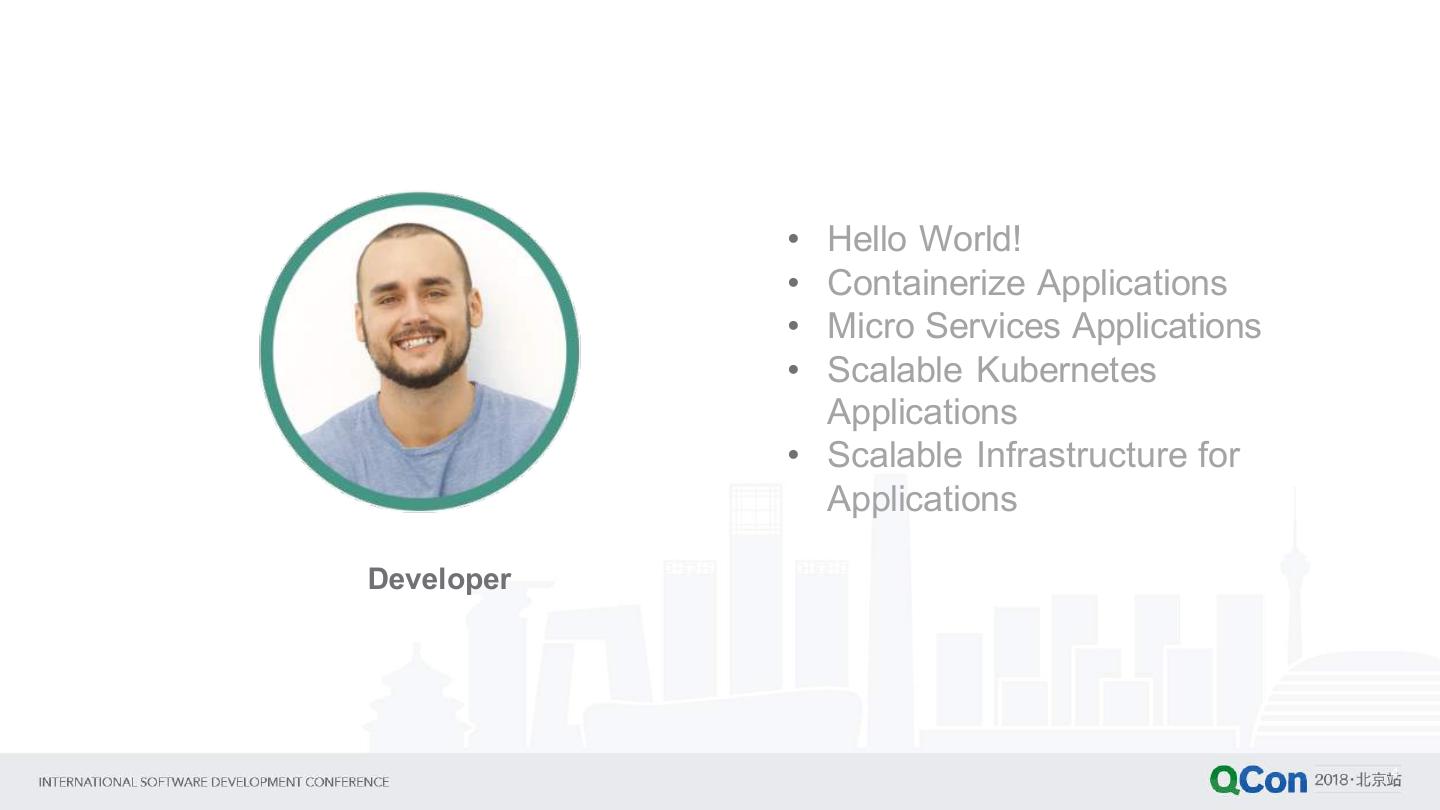 2 . • Hello World! • Containerize Applications • Micro Services Applications • Scalable Kubernetes Applications • Scalable Infrastructure for Applications Developer 4