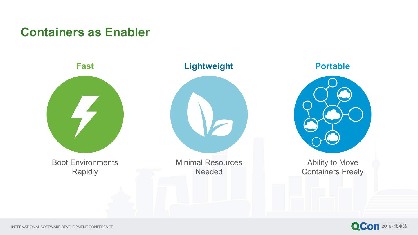 4 .Containers as Enabler Fast Lightweight Portable Boot Environments Minimal Resources Ability to Move Rapidly Needed Containers Freely