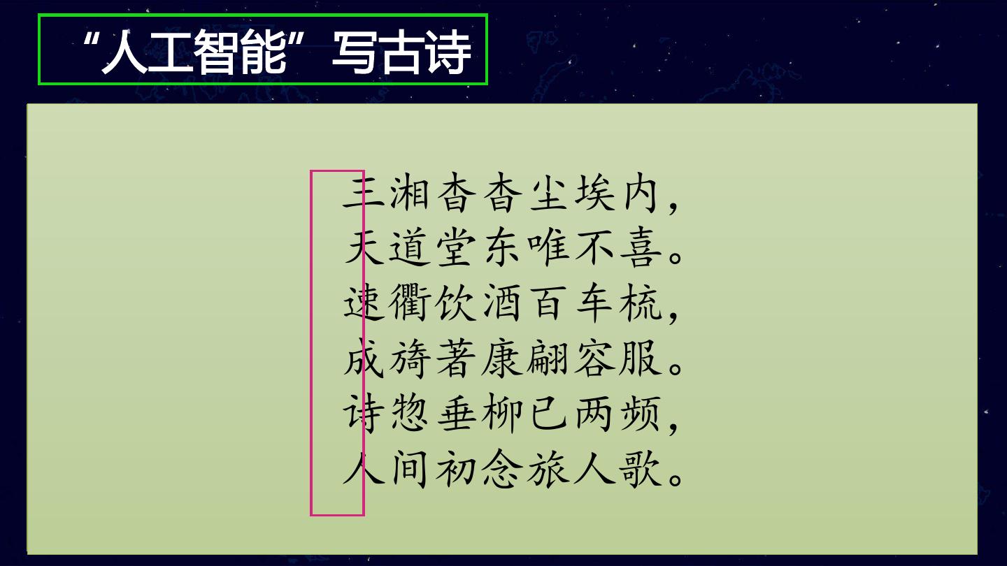 20 .“人工智能”写古诗 学习6000首 学习3万首 世前每忆江头雪,酒倒寒光一点流。 可园万囚径有鱼。 光正物中田无半,五谷流洛寒城蕊。 三湘杳杳尘埃内, 学习几十首 闻此夜云多寂寞,旧山斜照月初明。 切人弄十却闻。地索樊世歌王,城令无塞。 一里秋流再秋处,荃君咫剑百竿飞。 天道堂东唯不喜。 独恩毫戛水金阳,沽向丹池上二阳。 速衢饮酒百车梳, 羡公曾向楚,一径入空山。 汉同珠橘女尺,人日钱将管。 学习1000首 何是金干江正见,枉免累娘返舞边。 成旖著康翩容服。 九枝正城峨,松凋激墨五最。 日照千条尽,天寒雁度迟。 空王折缝众天枝,二刹弄摇难自缠。 诗惣垂柳已两频, 渔水千梦匡闭,张躯覆风。 水平天阁月,风影下天寒。 从忍欠生未得远,金枝才熟可追多。 人间初念旅人歌。 结子一里,关淮去下。故问声不处,秋此风月地。 不辨寒钟苦,时吟草色低。