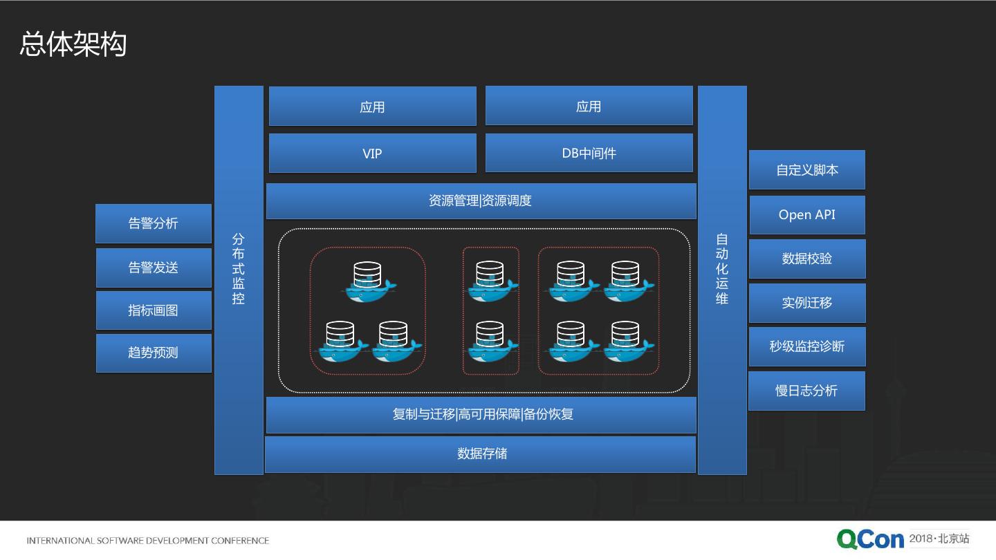 6 .总体架构 应用 应用 VIP DB中间件 自定义脚本 资源管理|资源调度 Open API 告警分析 分 自 布 动 数据校验 告警发送 式 化 监 运 控 维 实例迁移 指标画图 秒级监控诊断 趋势预测 慢日志分析 复制与迁移|高可用保障|备份恢复 数据存储