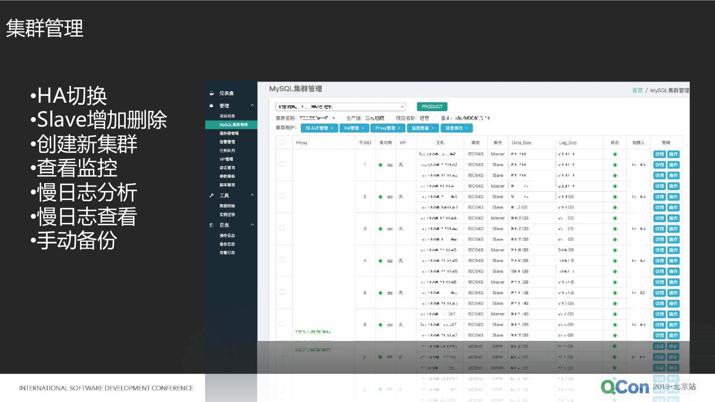 15 .集群管理 •HA切换 •Slave增加删除 •创建新集群 •查看监控 •慢日志分析 •慢日志查看 •手动备份