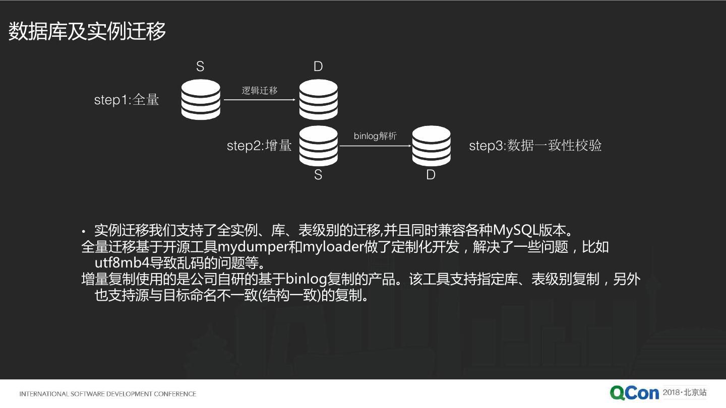 21 .数据库及实例迁移 S D 逻辑迁移 step1:全量 binlog解析 step2:增量 step3:数据一致性校验 S D •实例迁移我们支持了全实例、库、表级别的迁移,并且同时兼容各种MySQL版本。 全量迁移基于开源工具mydumper和myloader做了定制化开发,解决了一些问题,比如 utf8mb4导致乱码的问题等。 增量复制使用的是公司自研的基于binlog复制的产品。该工具支持指定库、表级别复制,另外 也支持源与目标命名不一致(结构一致)的复制。