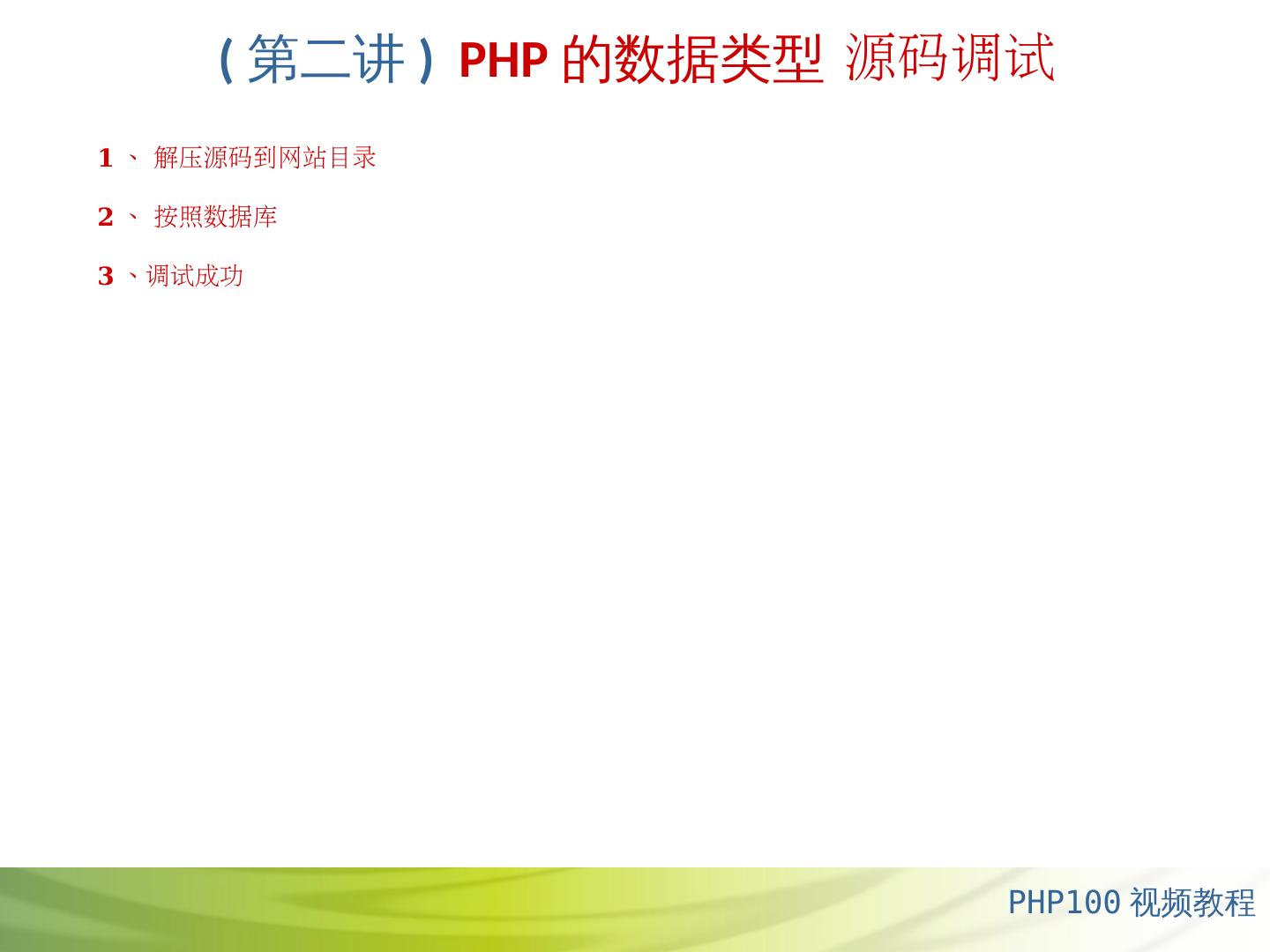 12 . ( 第二讲 ) PHP 的数据类型 源码调试 1 、 解压源码到网站目录 2 、 按照数据库 3 、调试成功 PHP100 视频教程