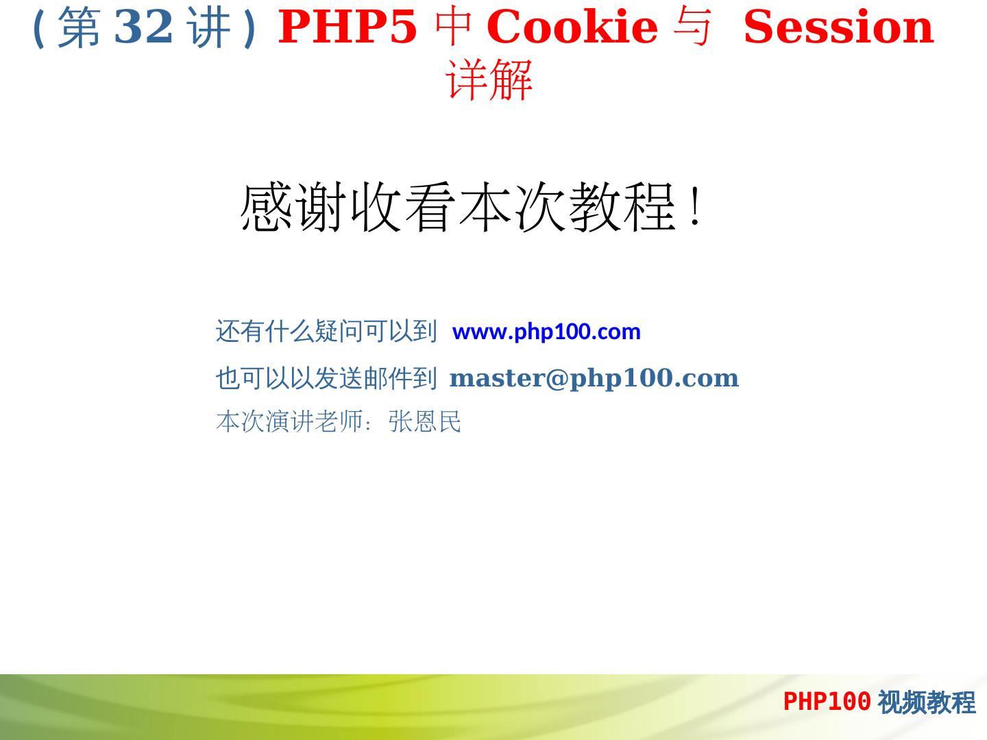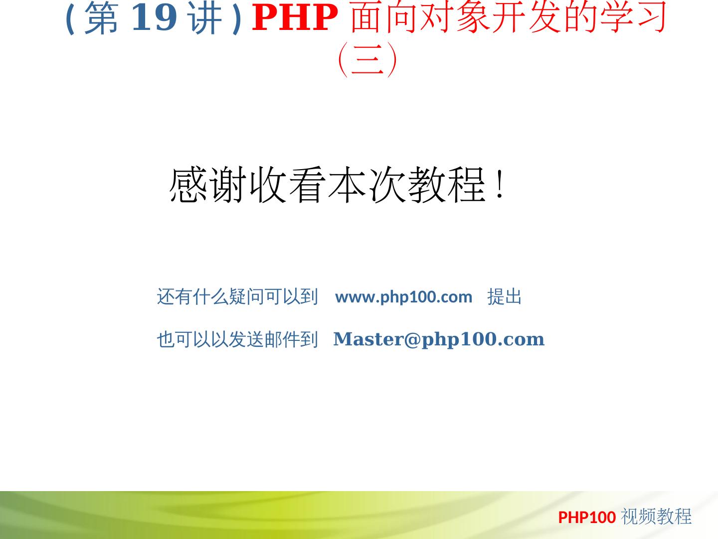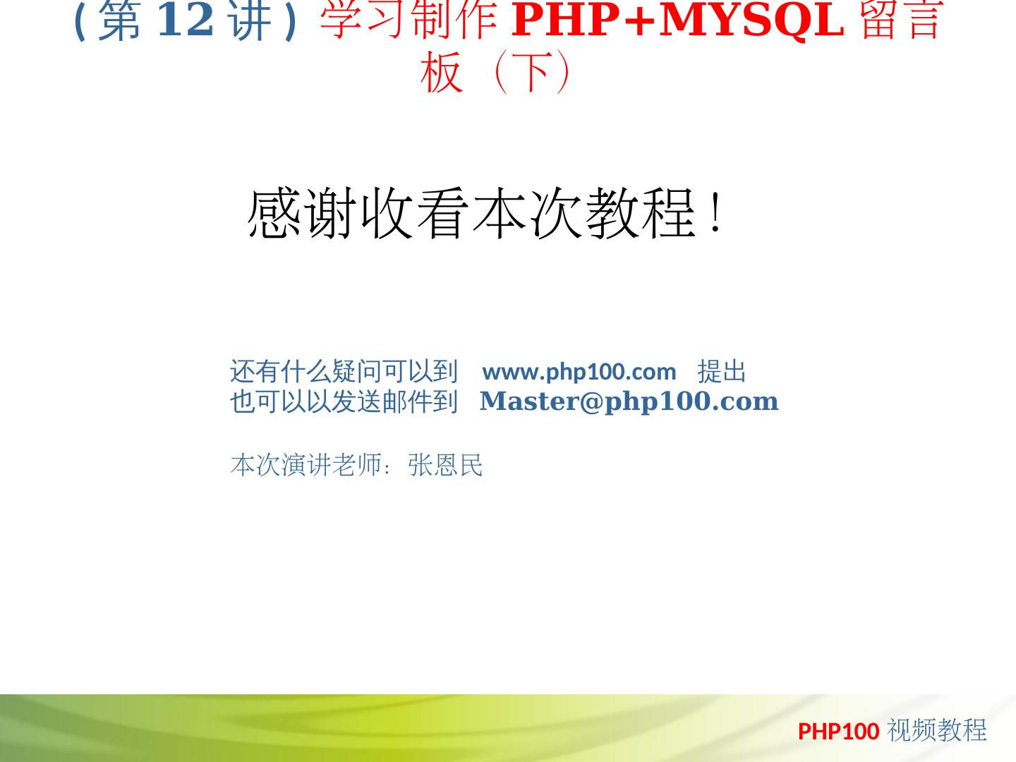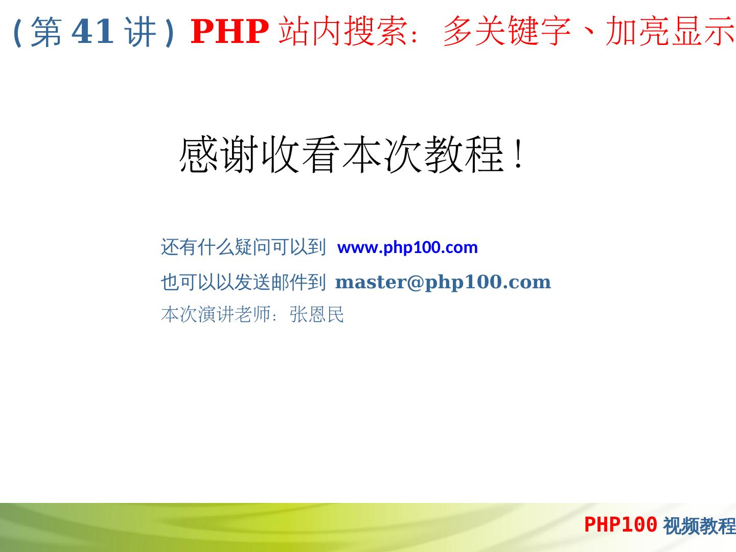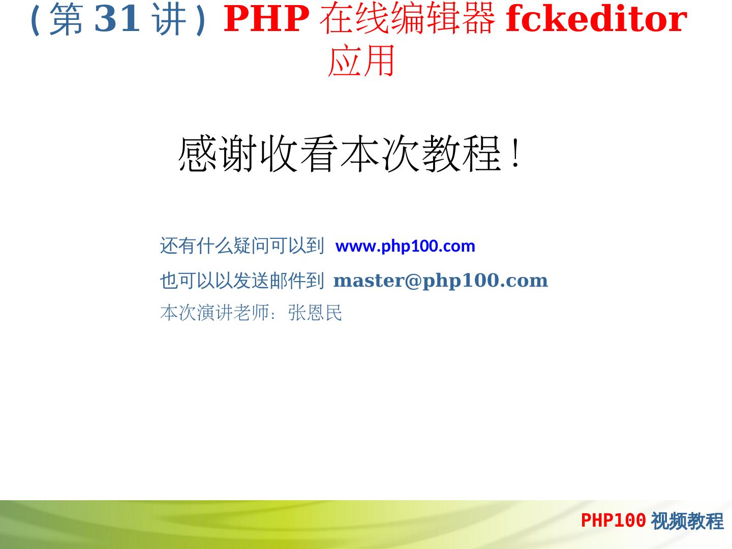 20 .( 第三讲 ) 常用 PHP 运算类型介绍与应用 感谢收看本次教程! 还有什么疑问可以到 www.php100.com 提出 也可以以发送邮件到 haowubai@hotmail.com ( msn ) 本次演讲老师:张恩民 PHP100 视频教程