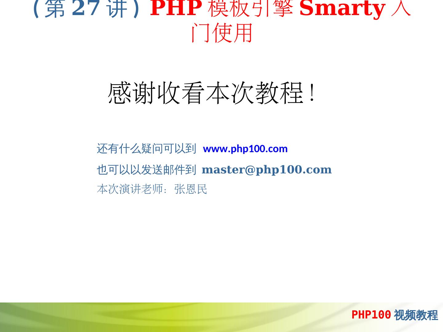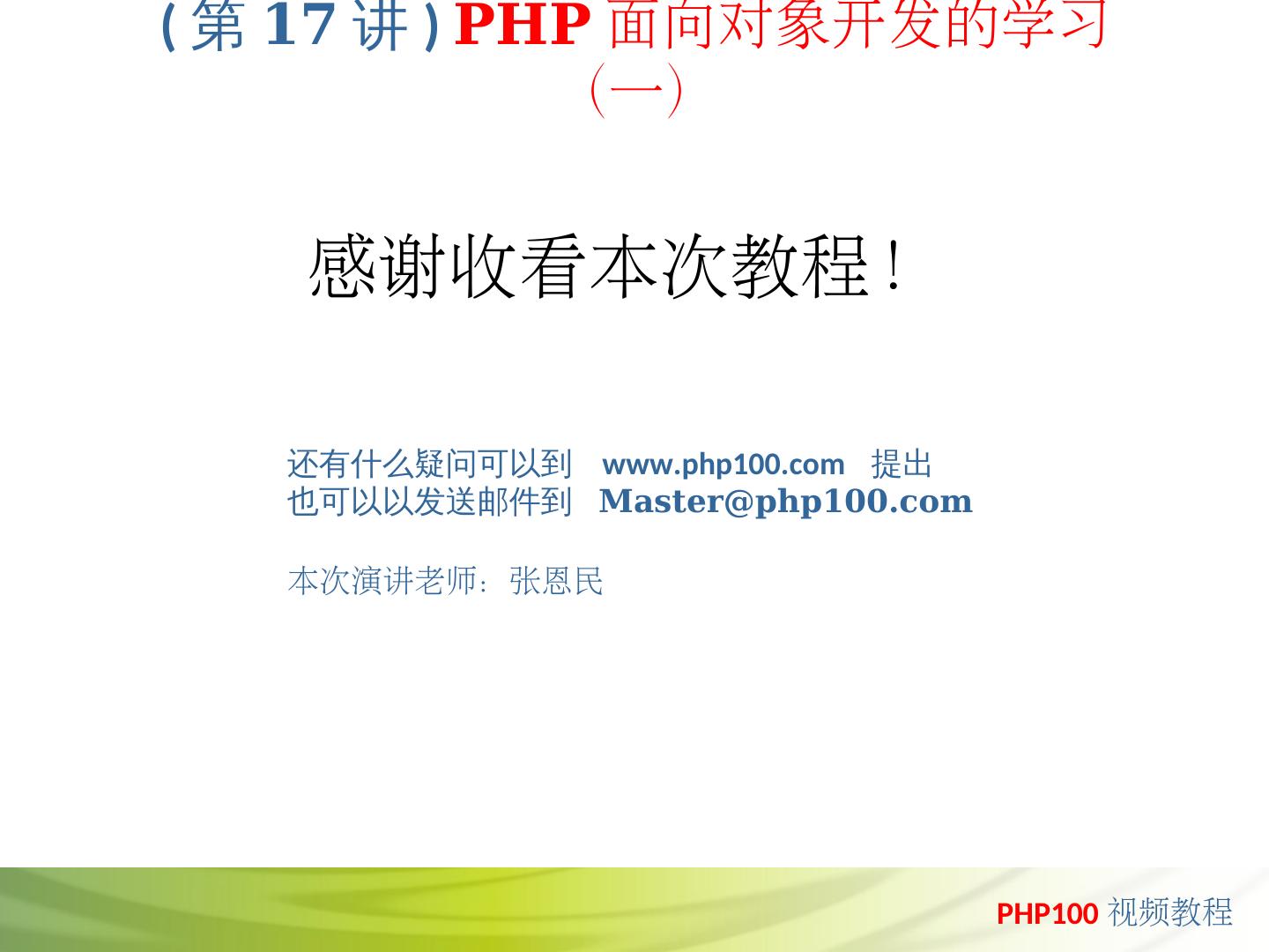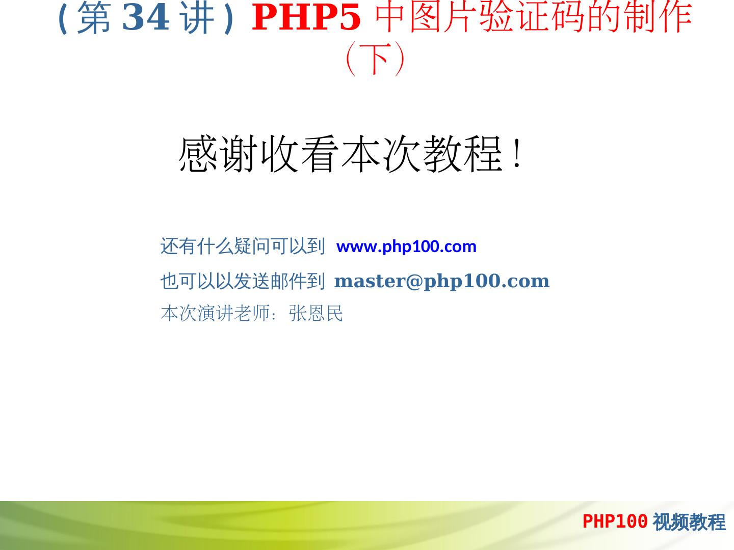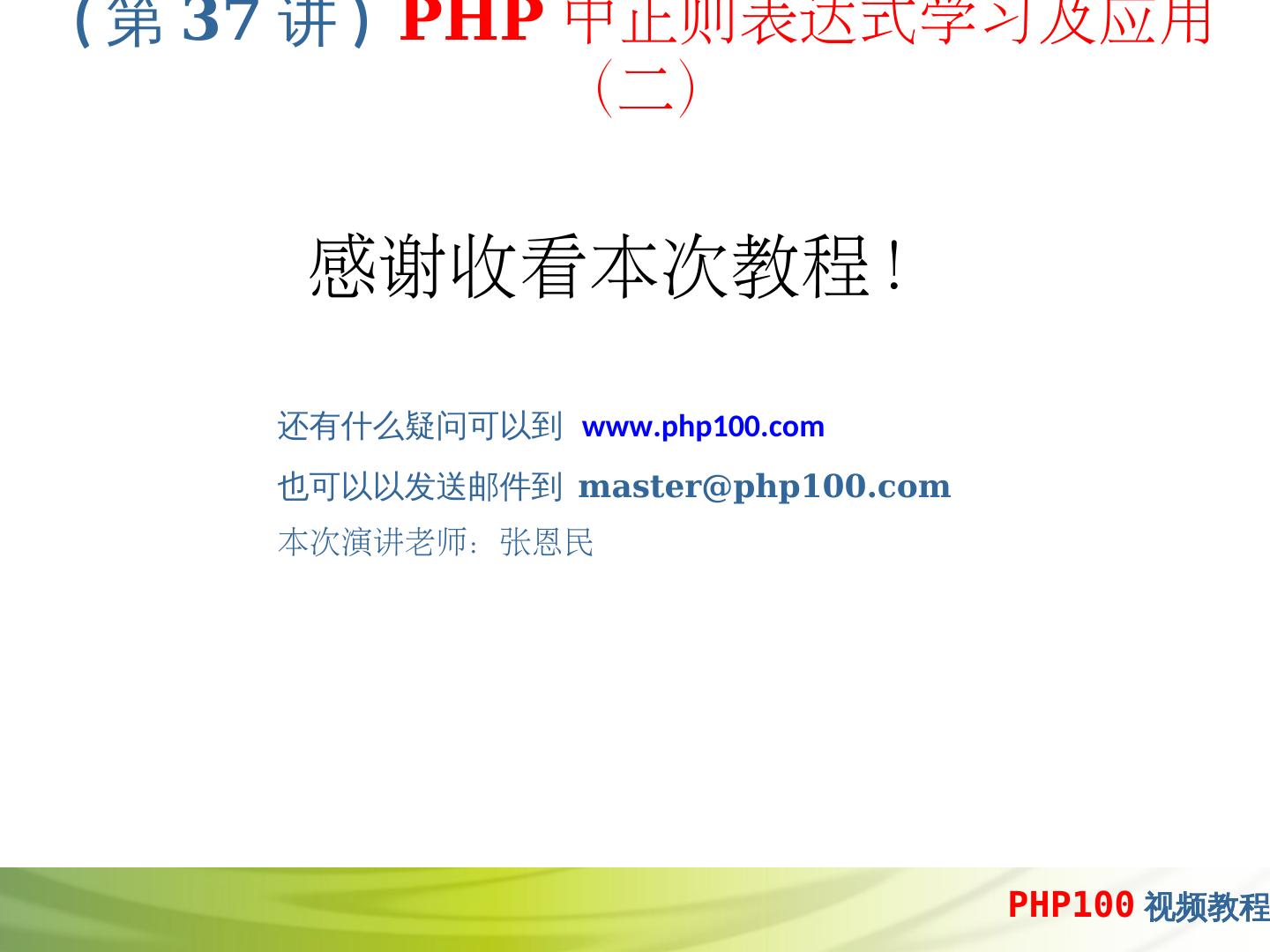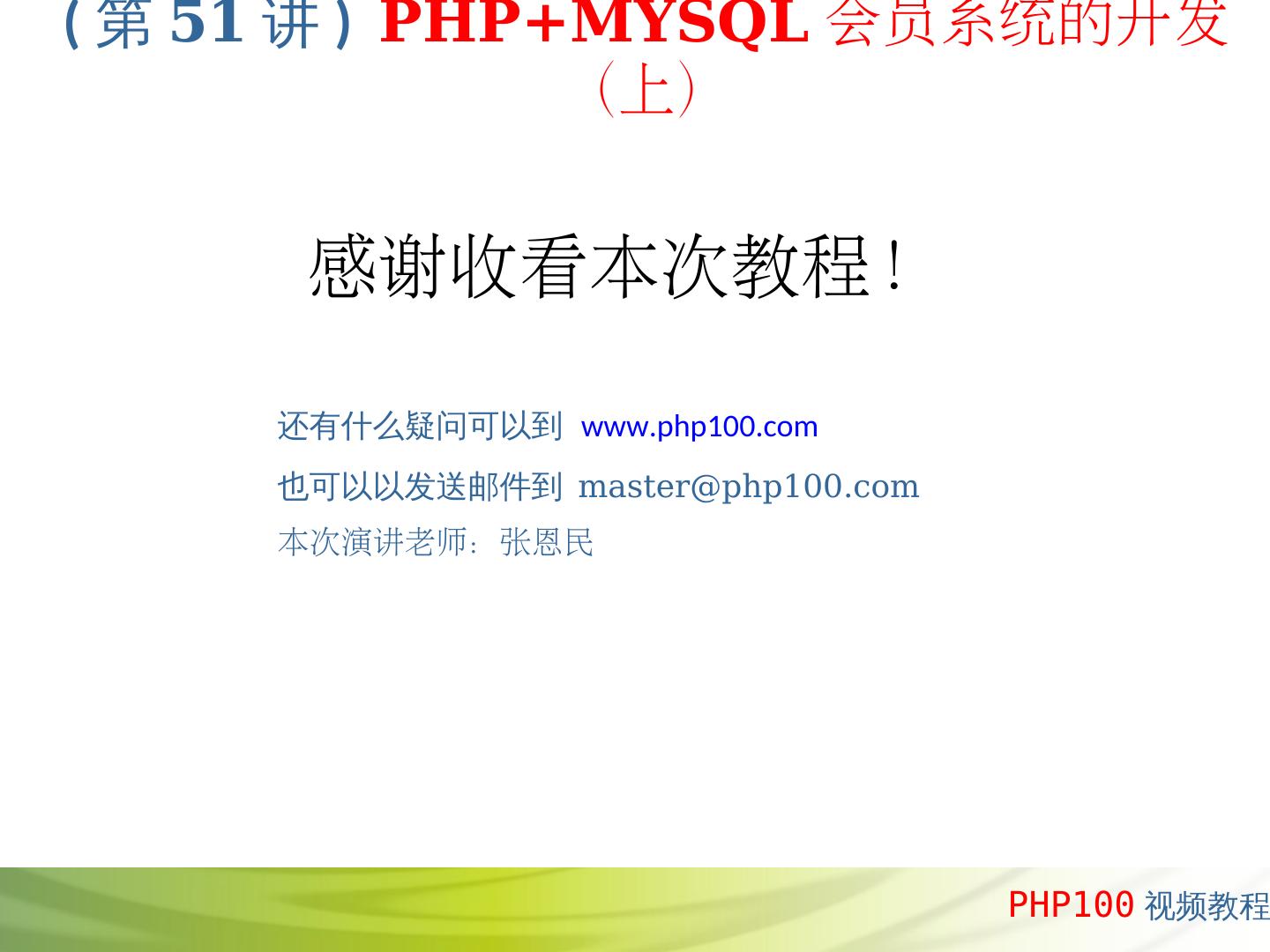 20 .( 第三讲 ) 常用 PHP 运算类型介绍与应用 感谢收看本次教程! 还有什么疑问可以到 www.php100.com 提出 也可以以发送邮件到 haowubai@hotmail.com ( msn ) 本次演讲老师:张恩民 PHP100 视频教程